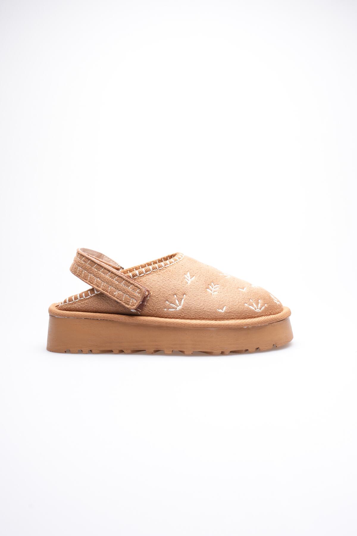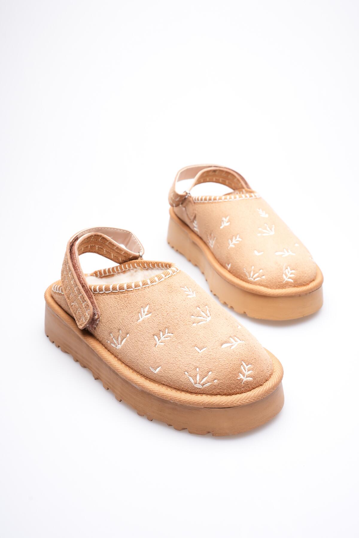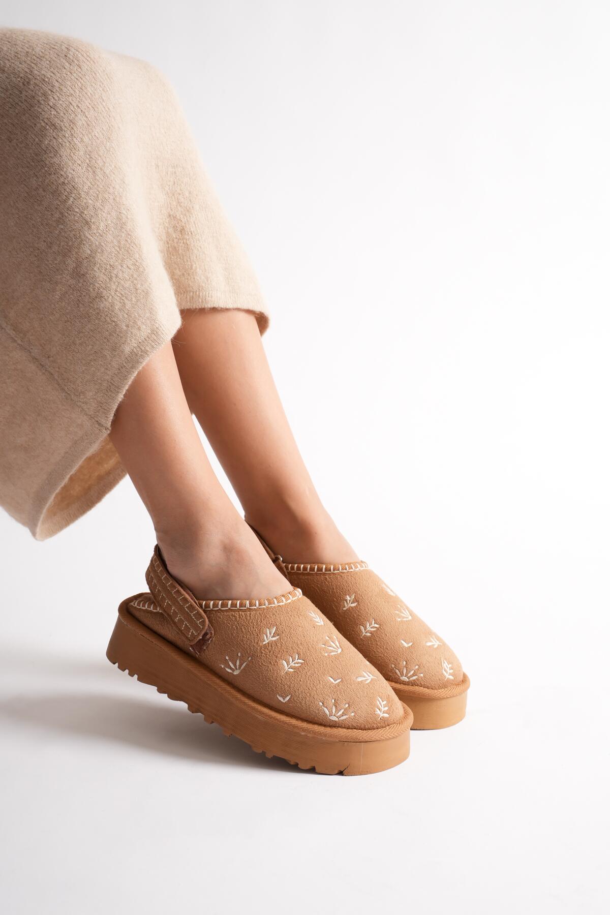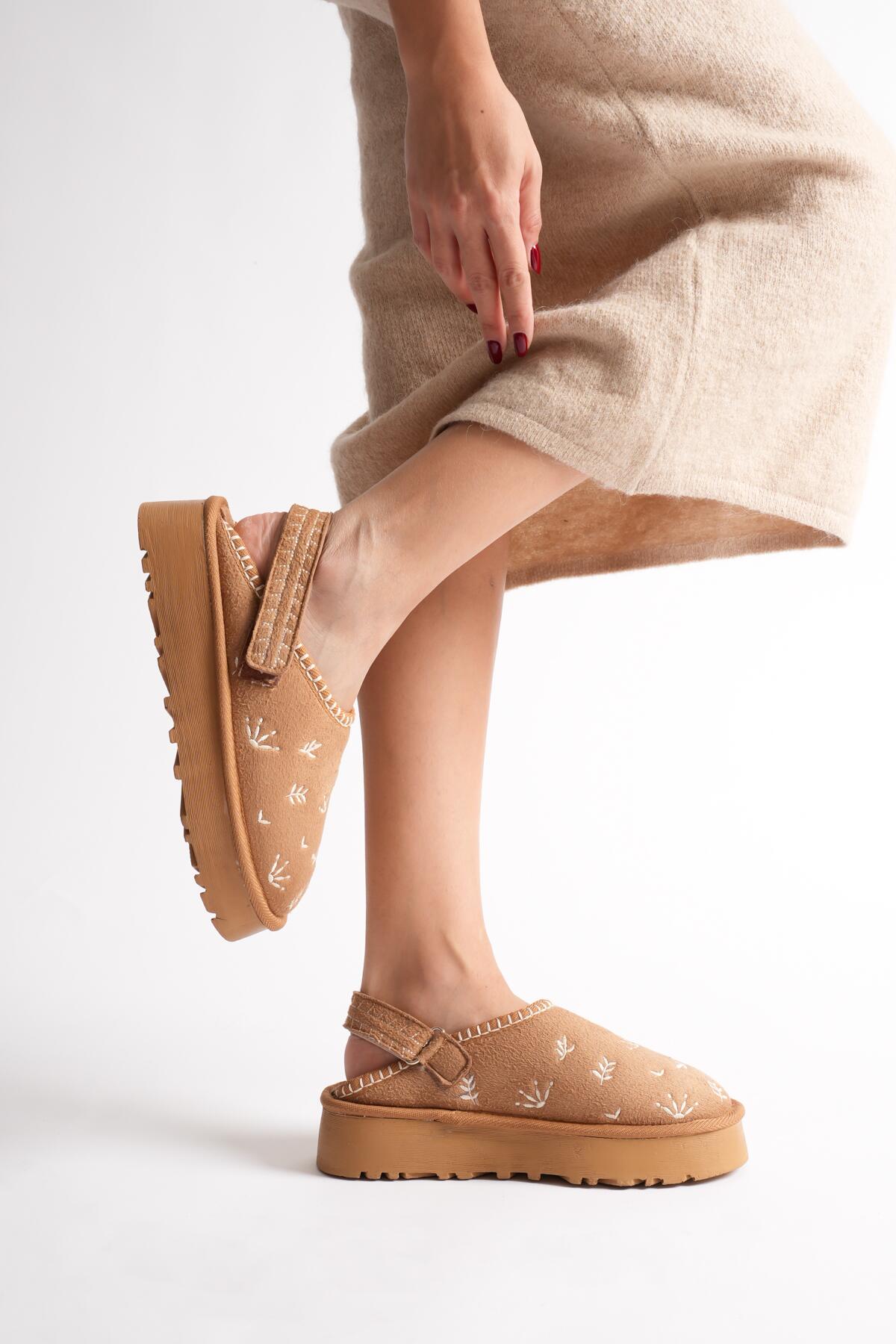 Içı Kürklü Nakişli Ultra Mini Süet Kışlık Taban Bot & Bootie Camel