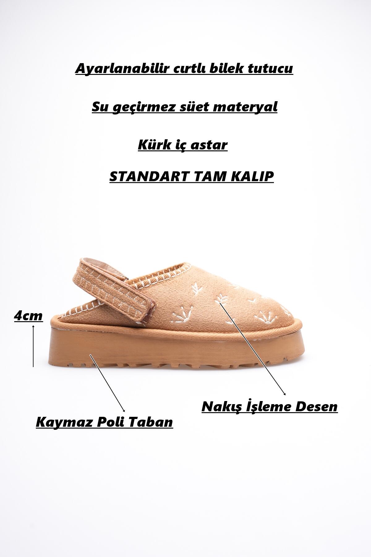 Içı Kürklü Nakişli Ultra Mini Süet Kışlık Taban Bot & Bootie