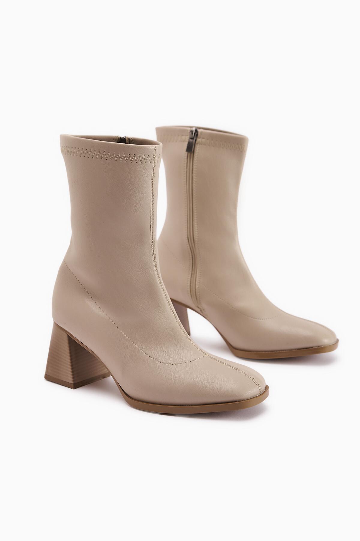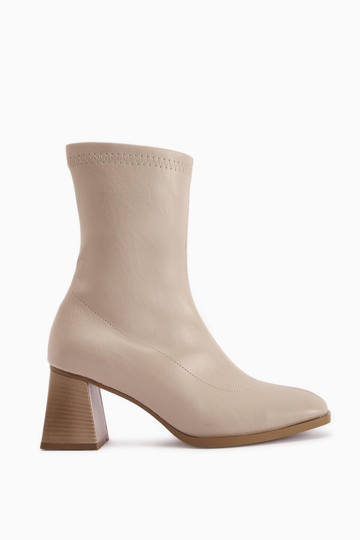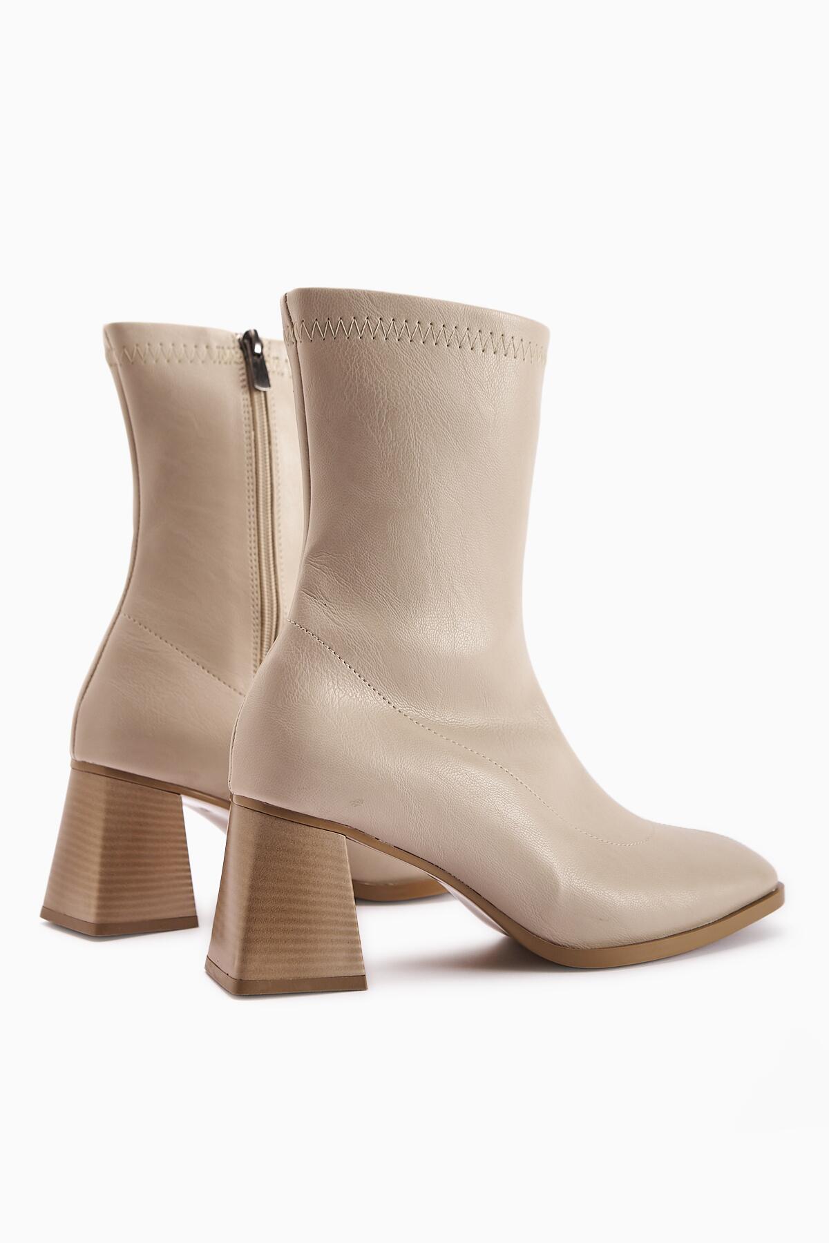 Kadın Bej Küt Burun Topuklu Bot Bej