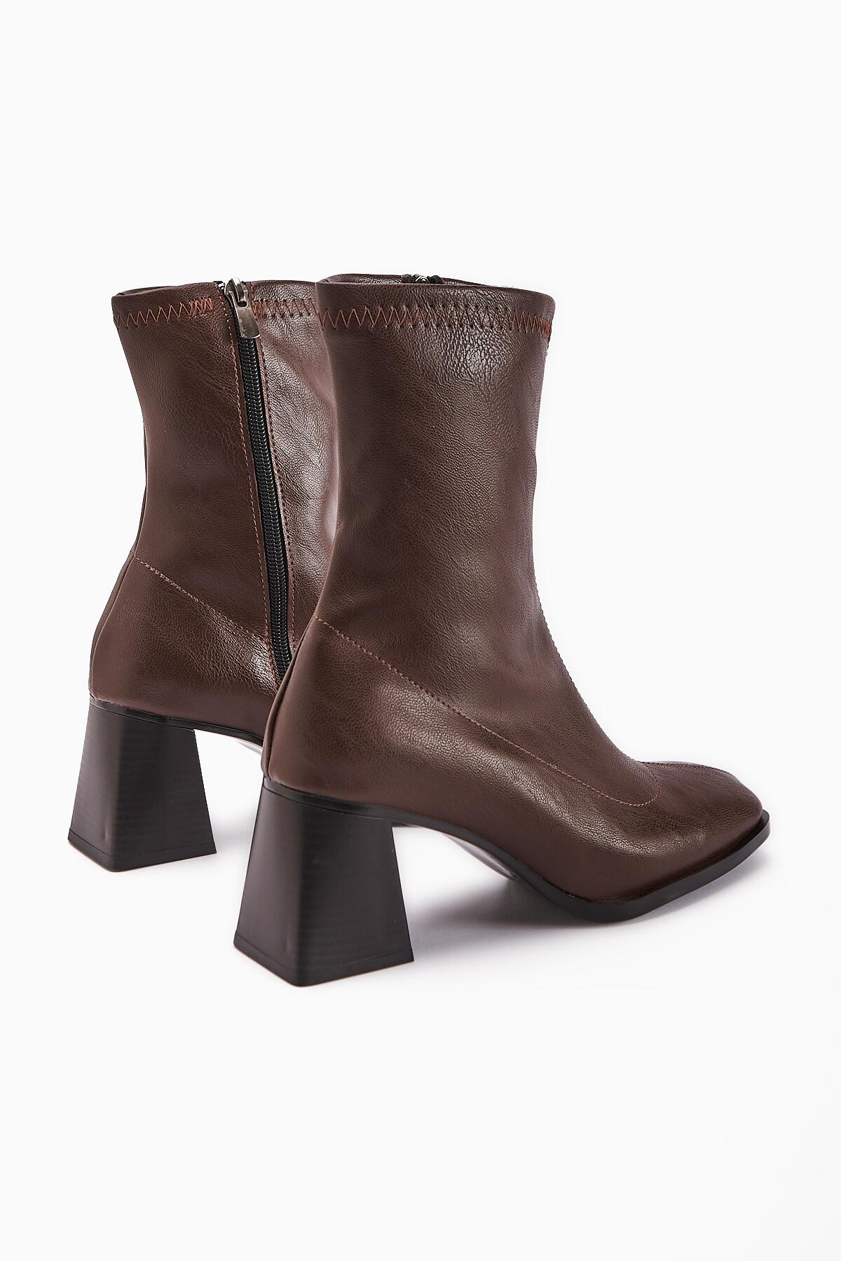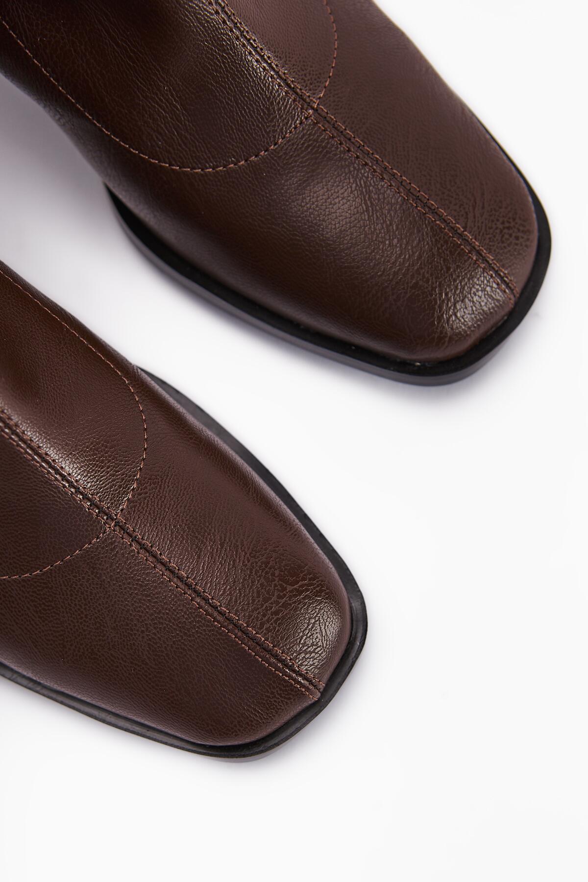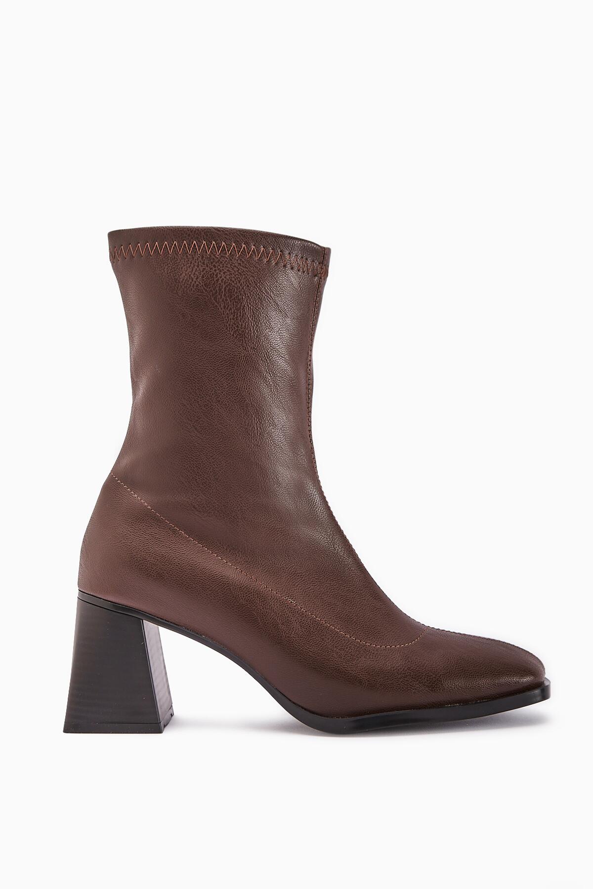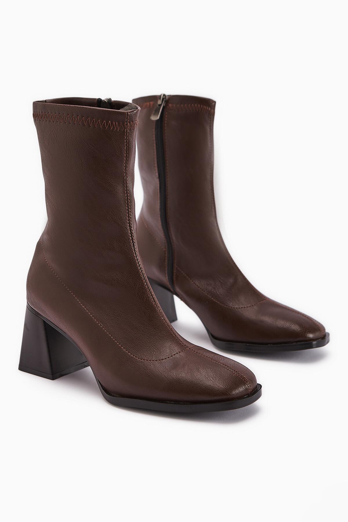 Kadın Kahve Küt Burun Topuklu Bot Koyu Kahverengi
