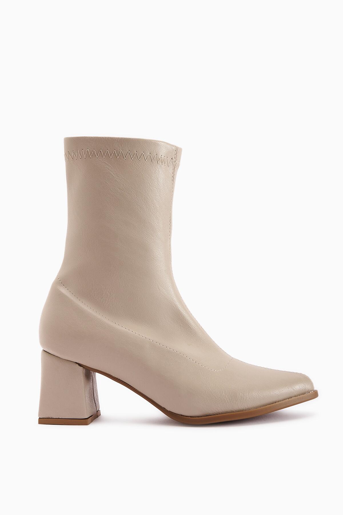 Kadın Sivri Burun Orta Boy Topuklu Cilt Bej