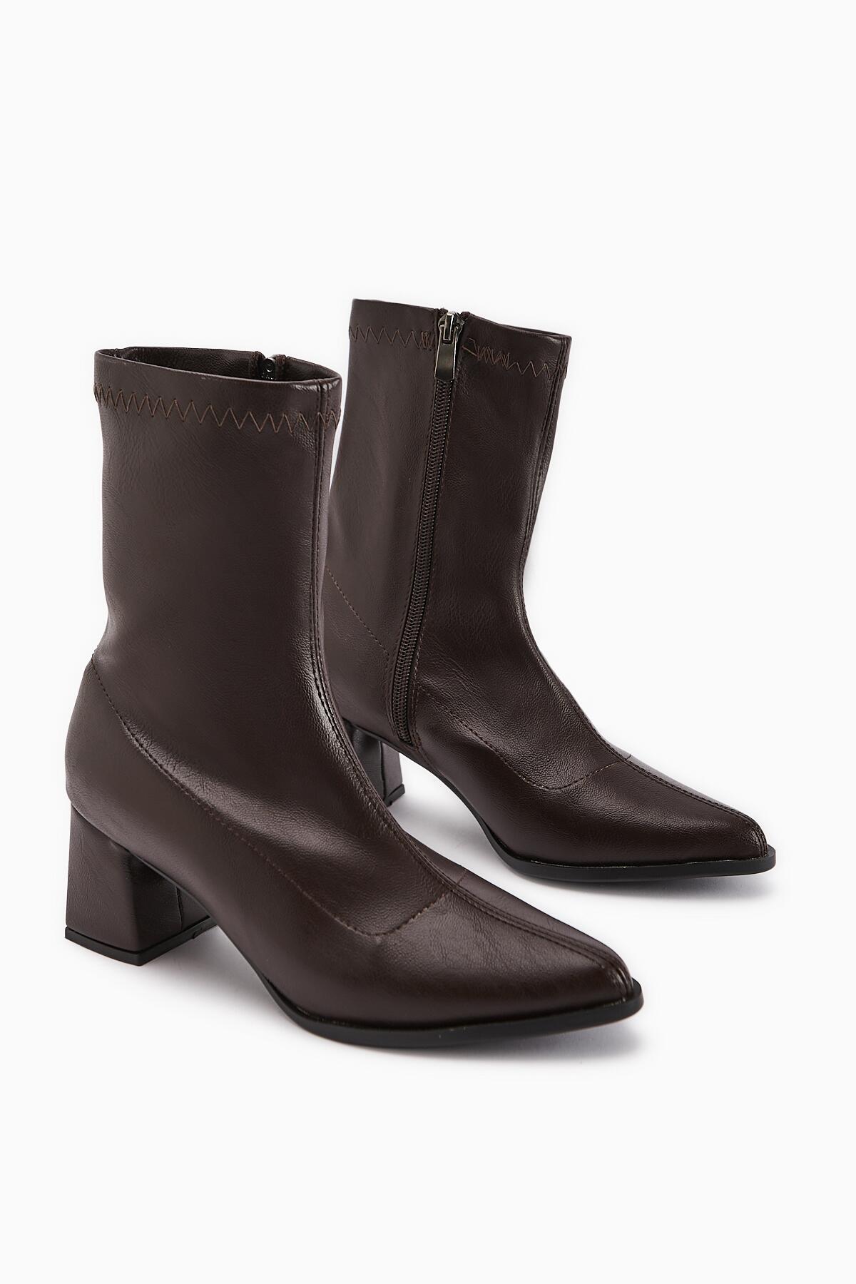 Kadın Sivri Burun Orta Boy Topuklu Cilt Koyu Kahverengi
