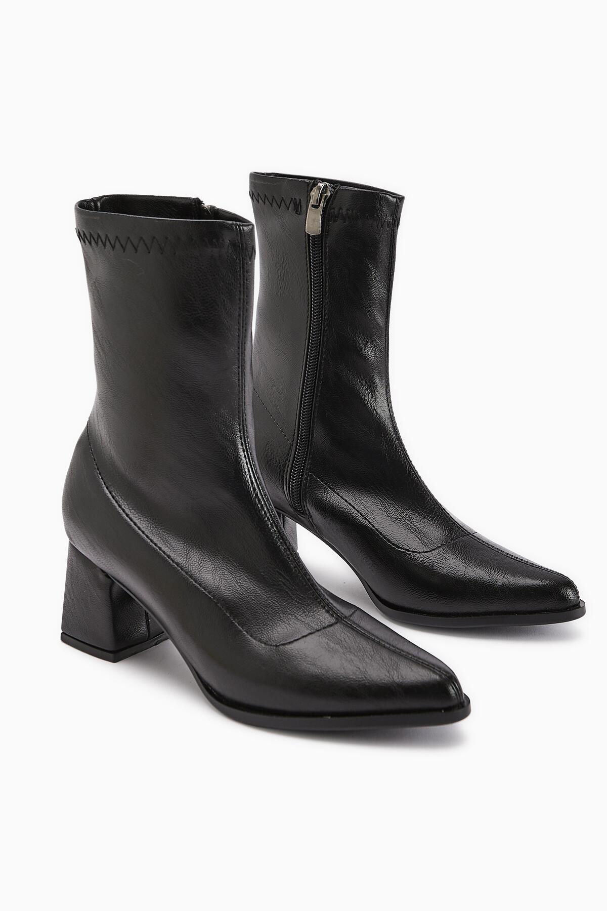 Kadın Sivri Burun Orta Boy Topuklu Cilt Siyah