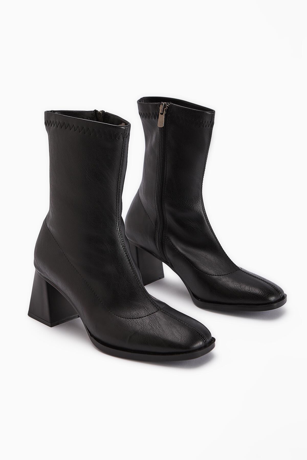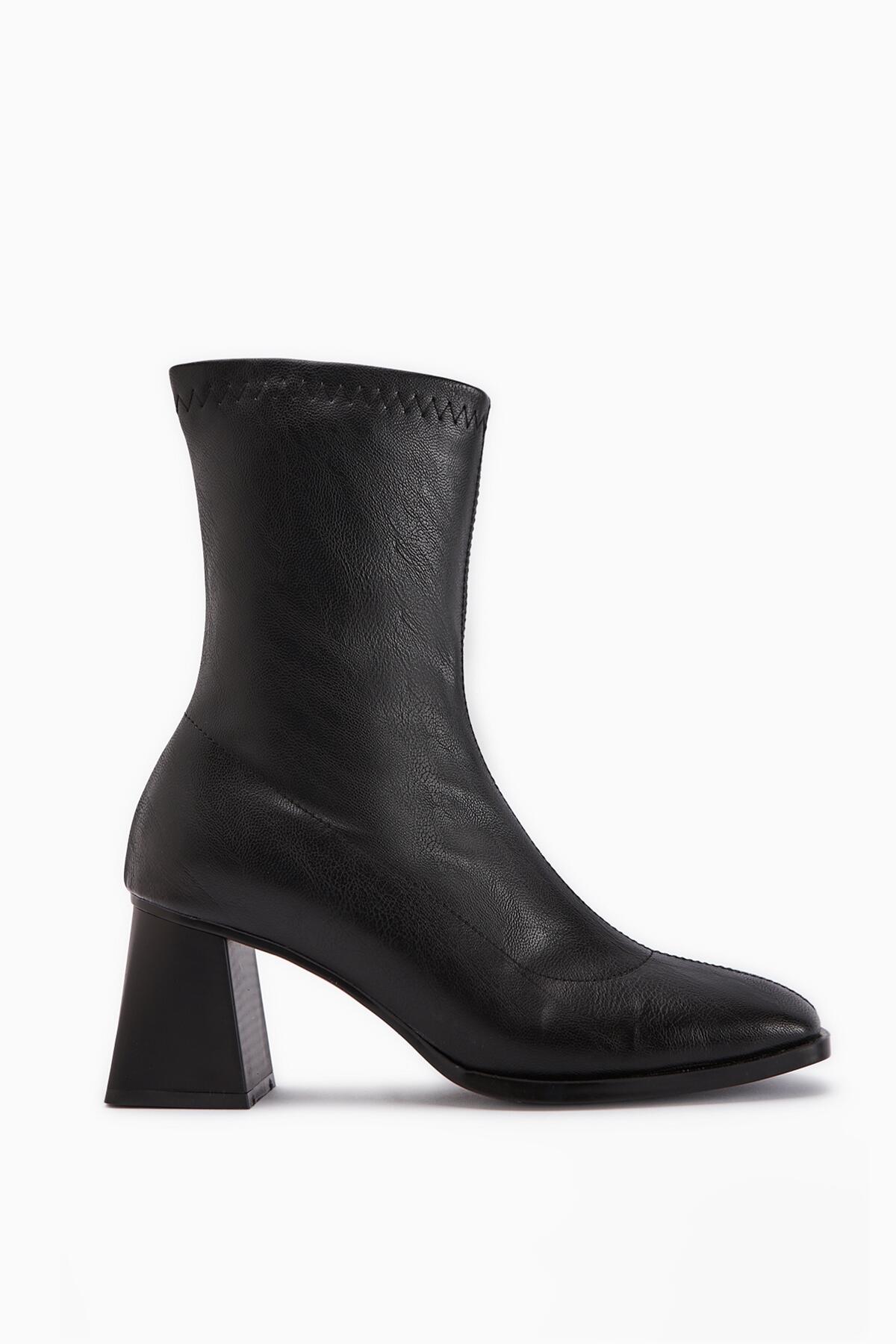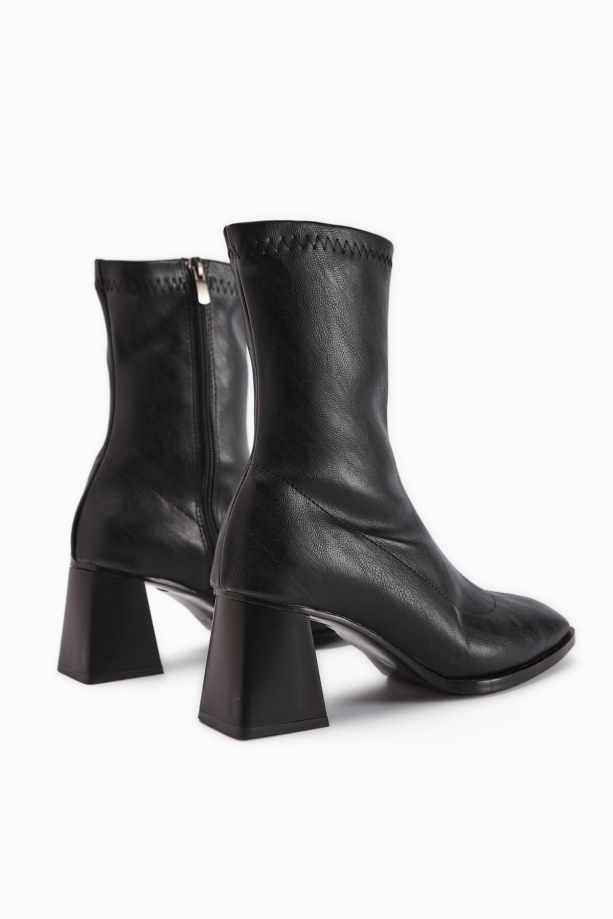 Kadın Siyah Küt Burun Topuklu Bot Siyah