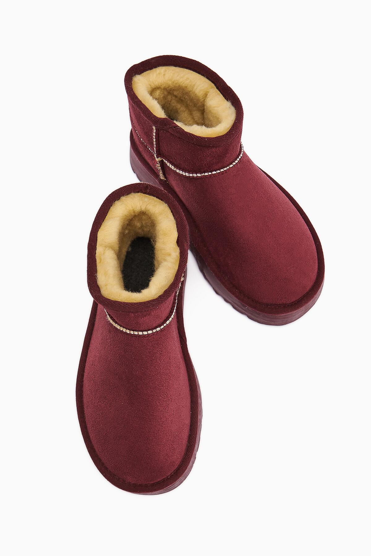 Teel Içi Kürklü Mini Süet Kışlık Taban Bot & Bootie Bordo