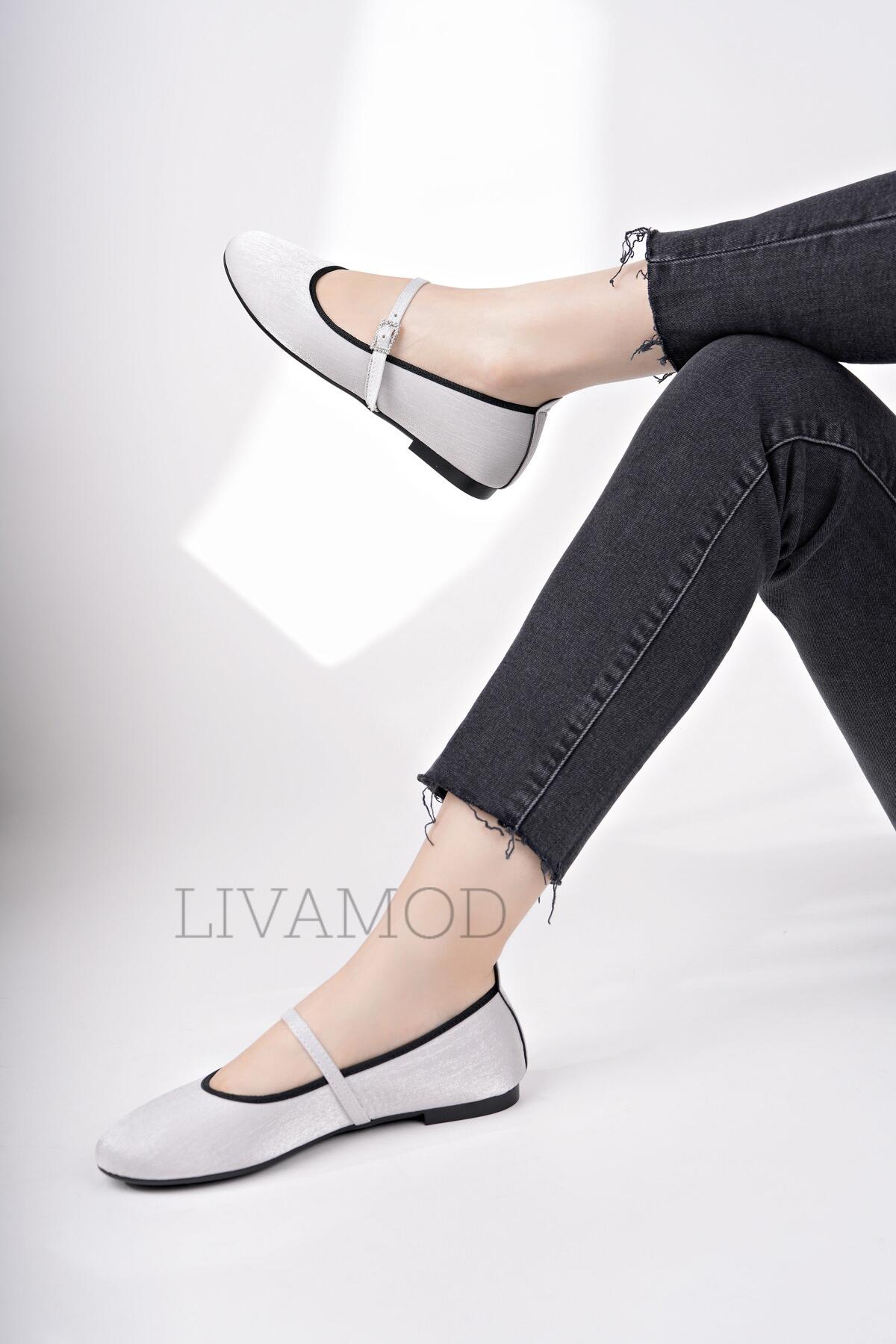Danya Kadın Günlük Babet Yuvarlak Burun Balerin Babet Ortopedik Memory Flex Hafızalı Taban Açık Gri
