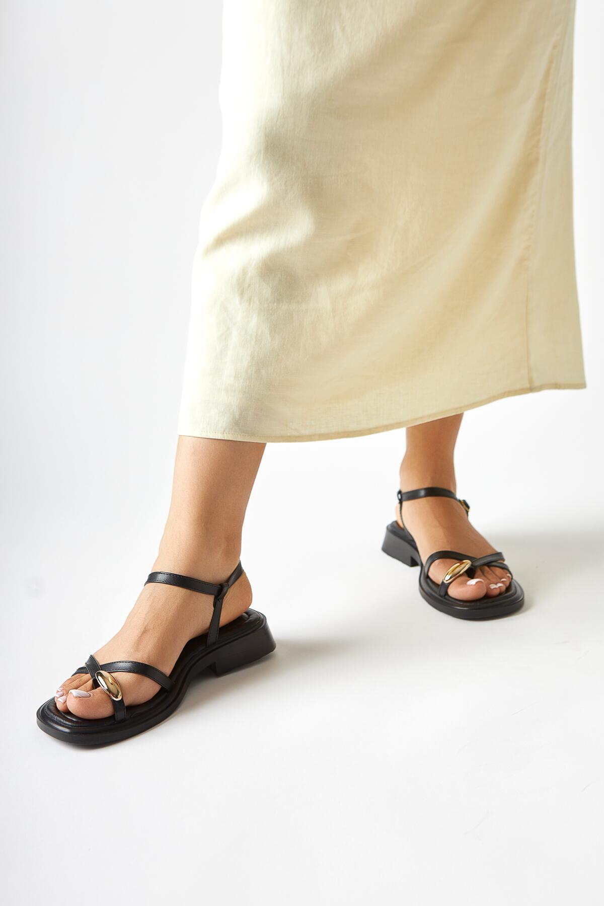 Kadın Lissome Sandalet Ayarlanabilir Tokalı Deri Ortopedik Memory Flex Hafızalı Taban Siyah