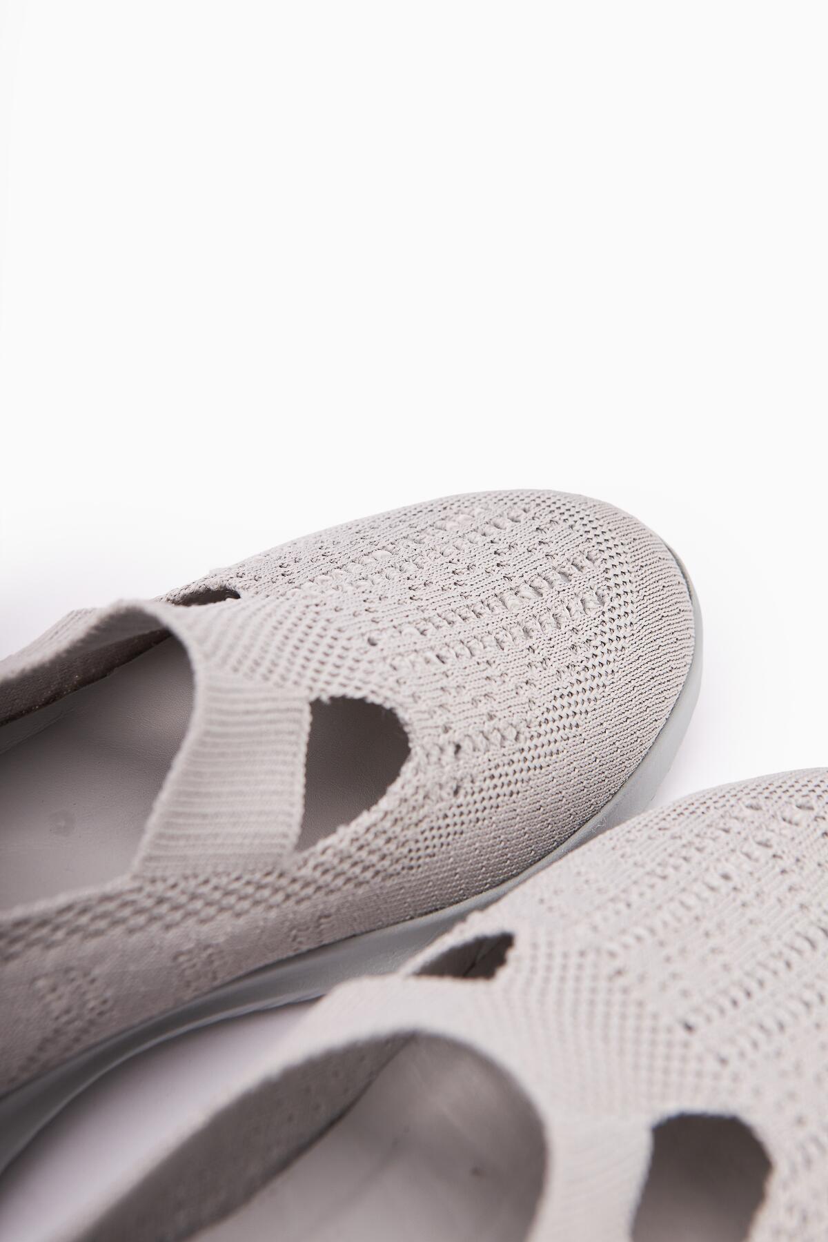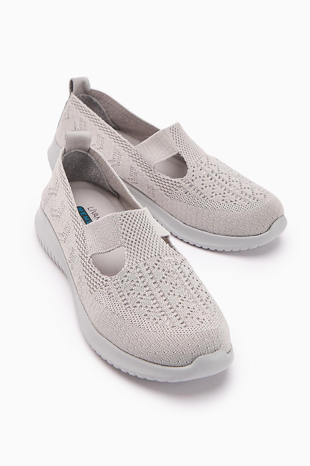 Flexor Kadın Hakiki Deri Ortopedik Taban Triko Günlük Spor Ayakkabı Açık Gri
