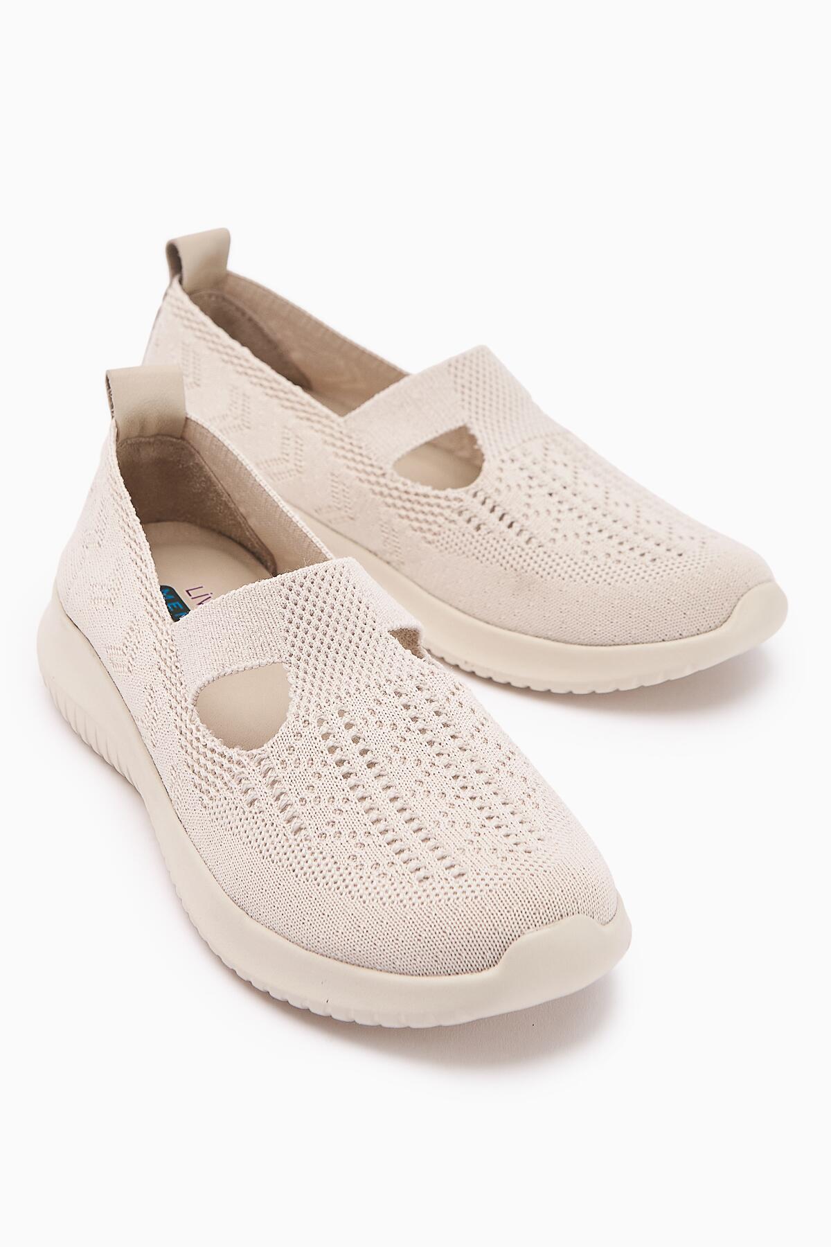 Flexor Kadın Hakiki Deri Ortopedik Taban Triko Günlük Spor Ayakkabı Bej