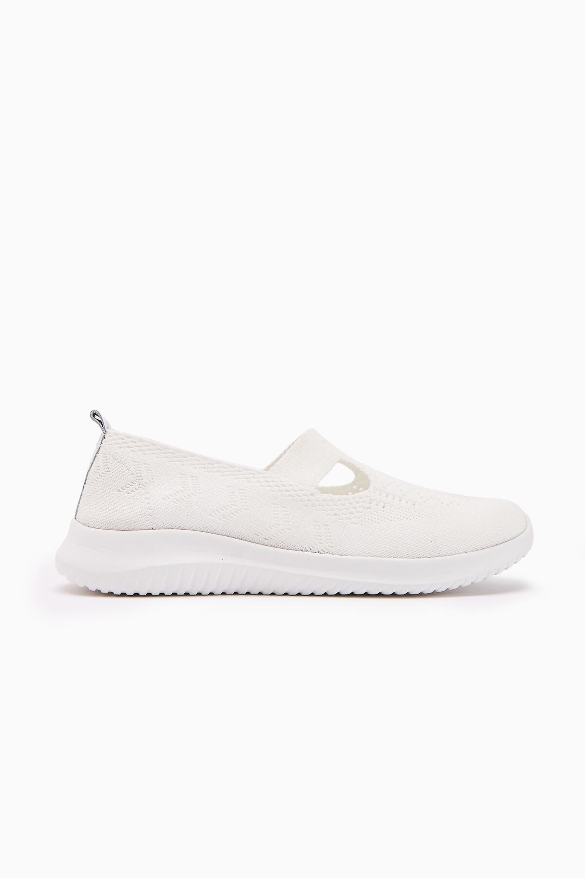 Flexor Kadın Hakiki Deri Ortopedik Taban Triko Günlük Spor Ayakkabı Beyaz