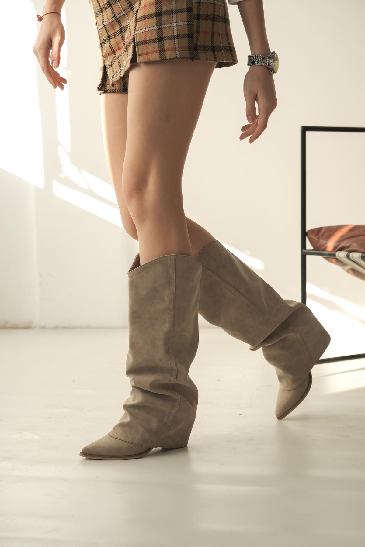 Ella Körüklü Kadın Topuklu Çizme Ekru