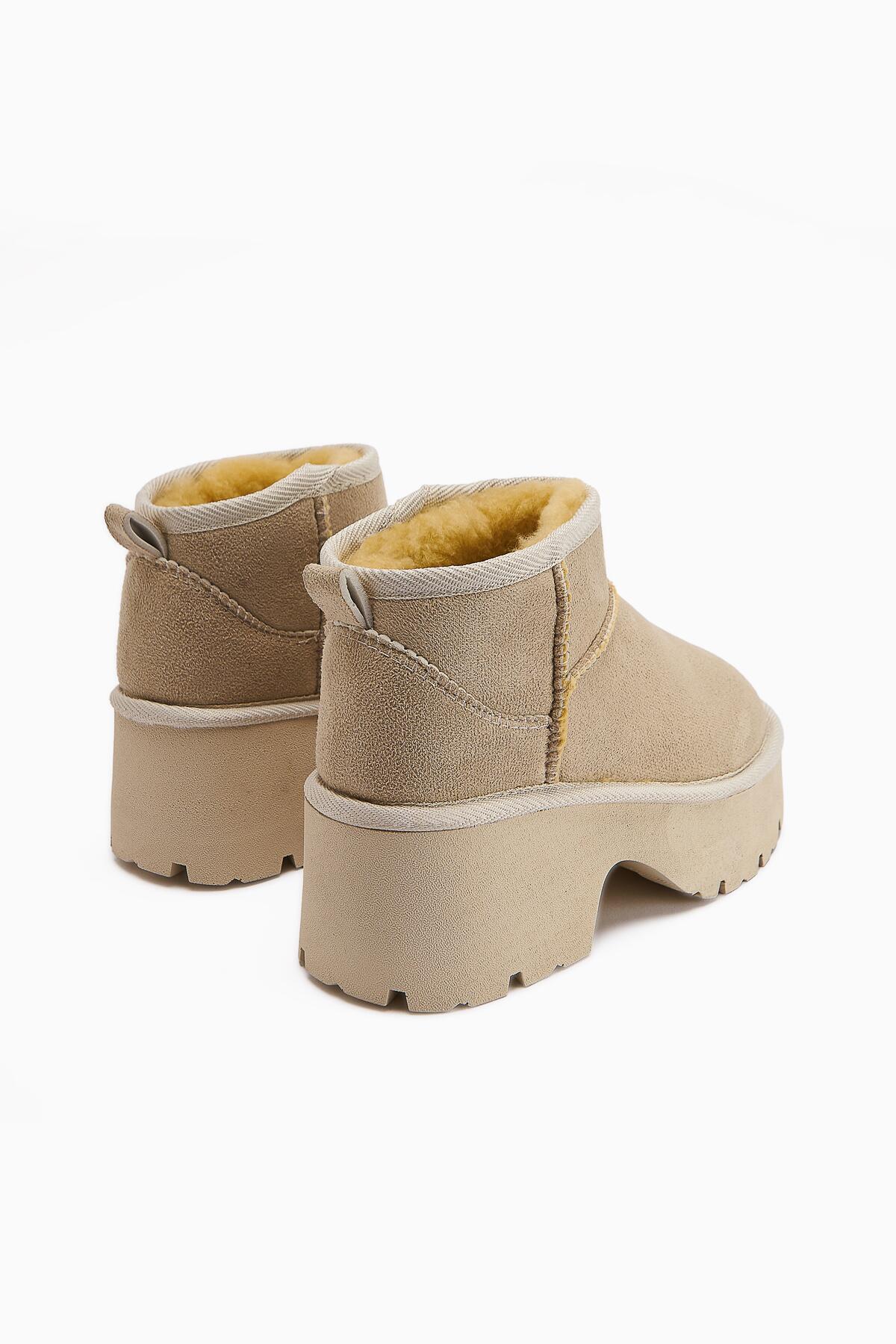 Classic Ultra Mini New Heights Kısa Bilek Içi Kürklü Platform Taban Günlük Bot Bej