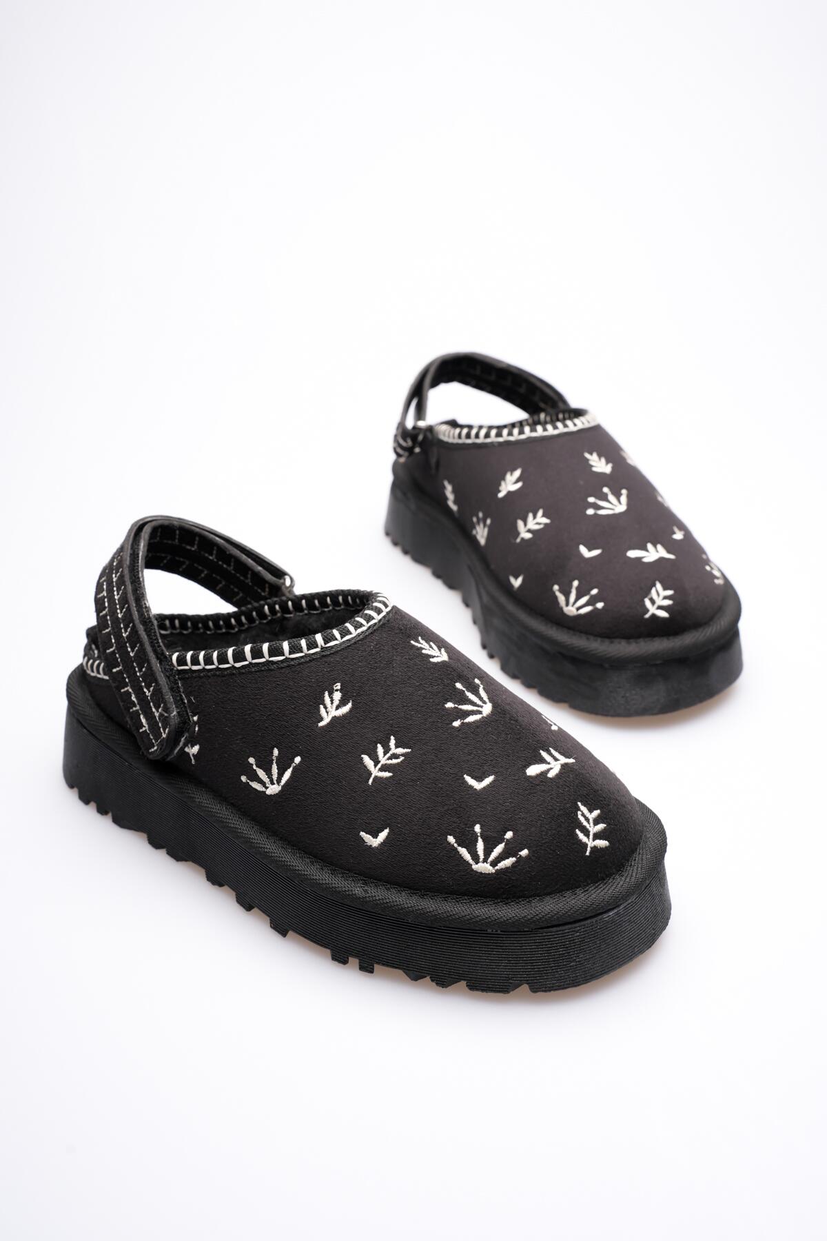 Içı Kürklü Nakişli Ultra Mini Süet Kışlık Taban Bot & Bootie Siyah