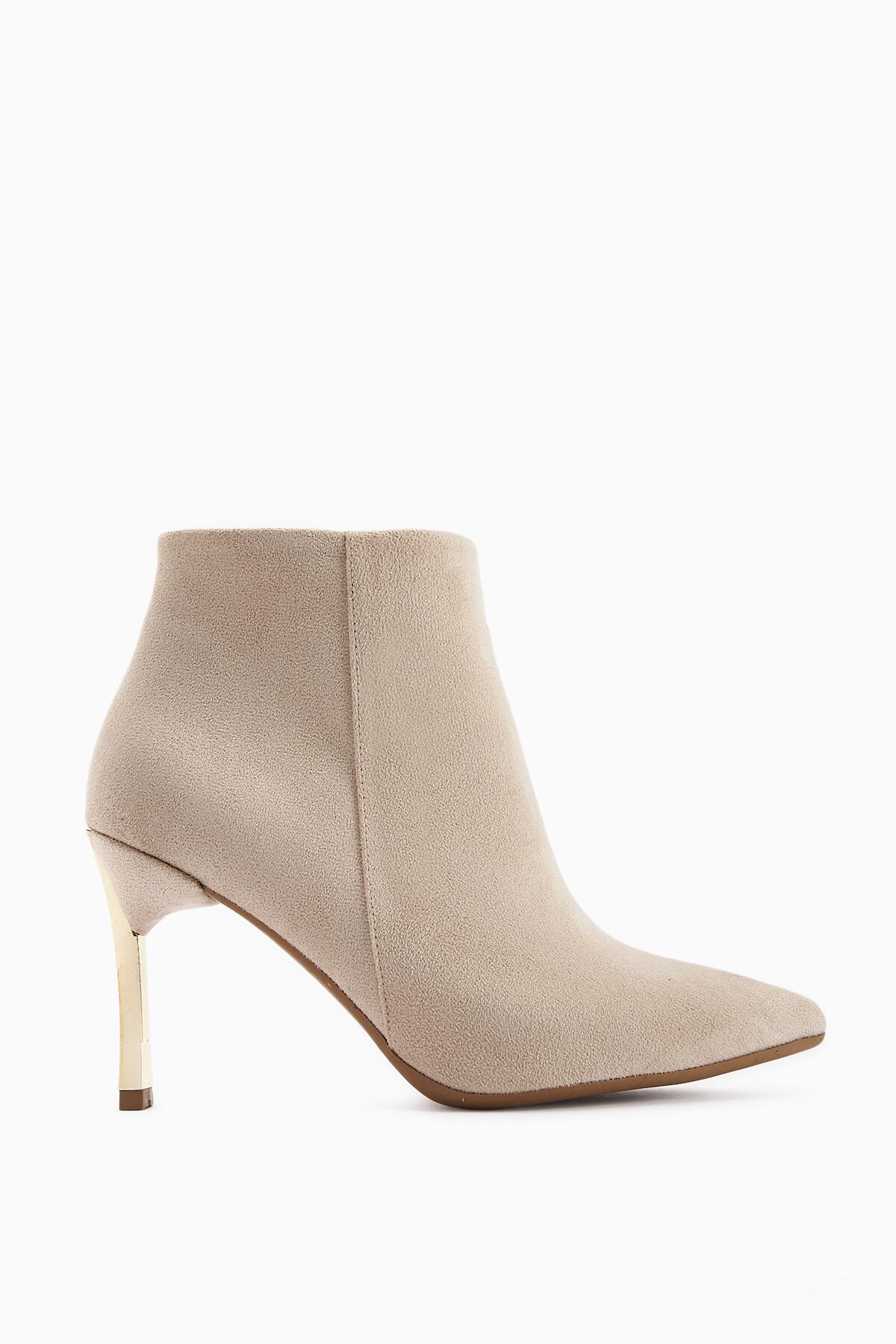 Sivri Burun İnce Altin Topuk Bot Bej
