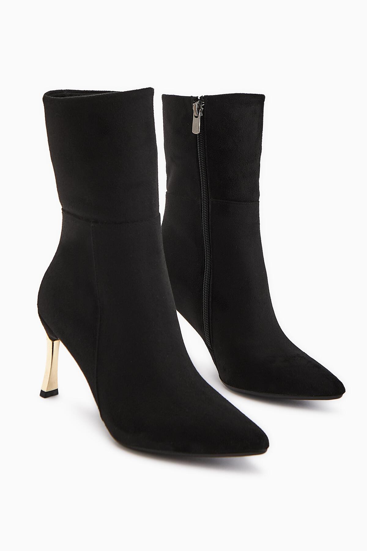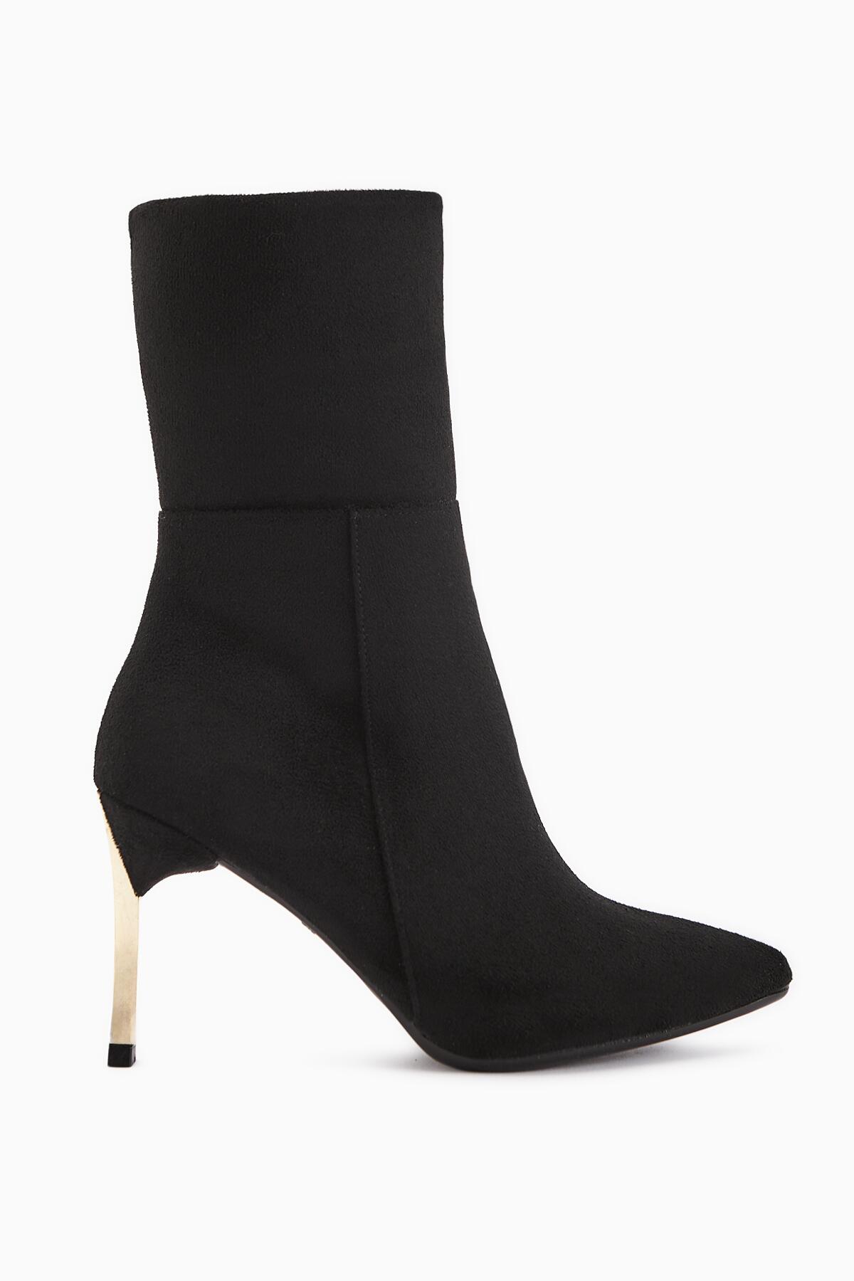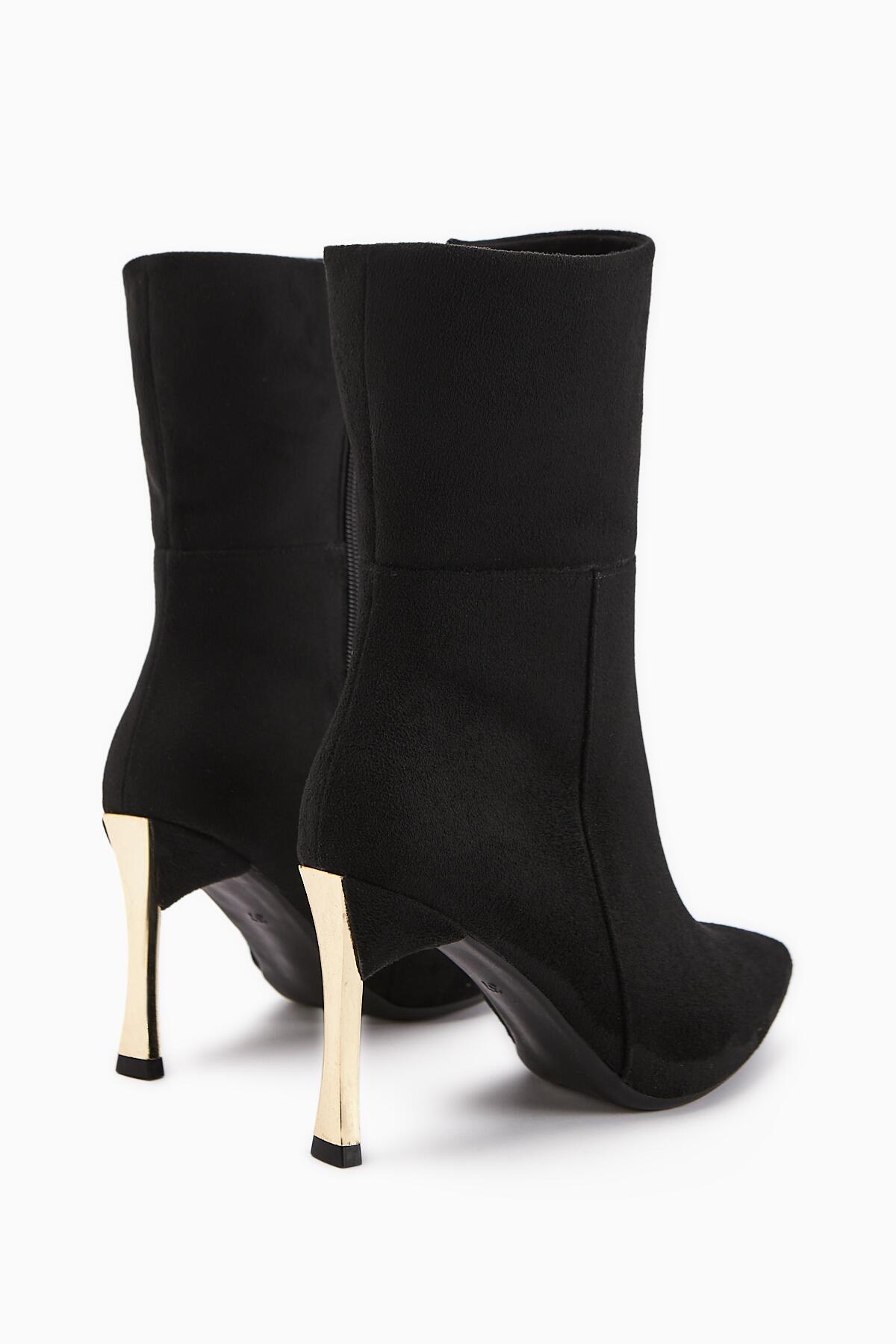 Sivri Burun İnce Altin Topuklu Kisa Çizme Siyah