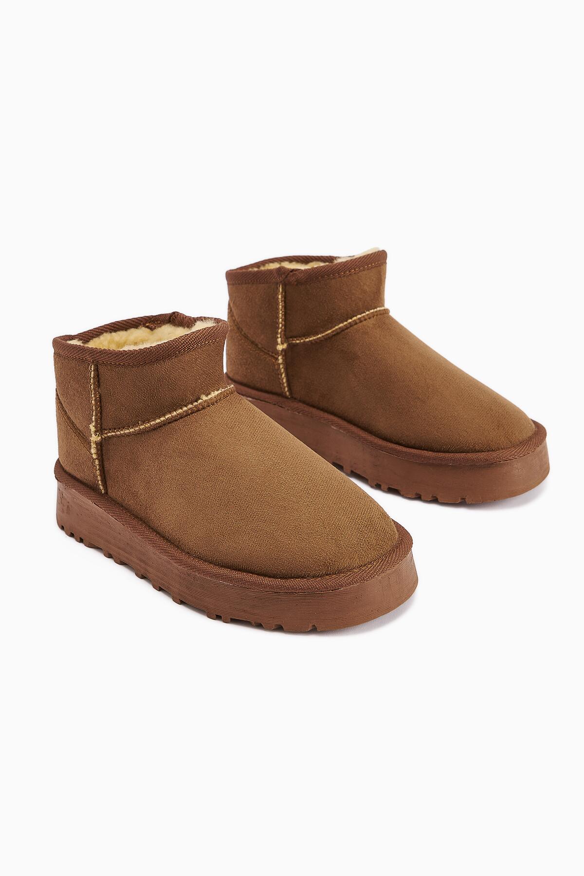 Teel Içi Kürklü Mini Süet Kışlık Taban Bot & Bootie Taba