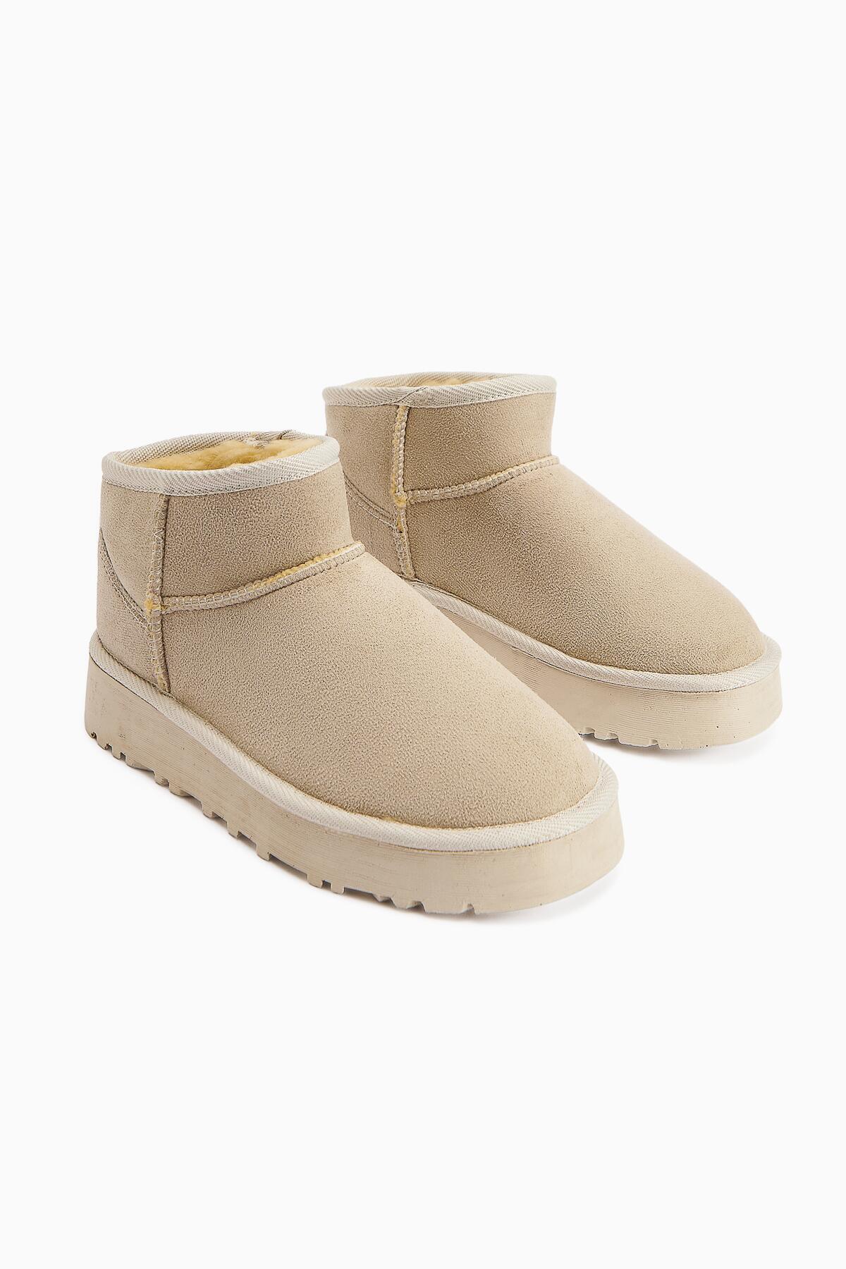 Teel Içi Kürklü Mini Süet Kışlık Taban Bot & Bootie Bej