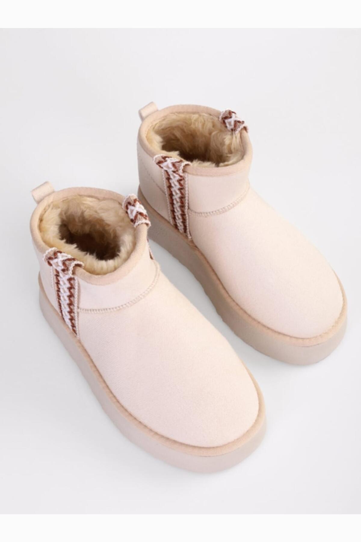 Teel Içi Kürklü Mini Süet Kışlık Taban Bot & Bootie Bej
