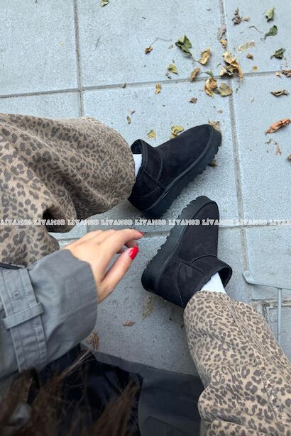 Teel Içi Kürklü Mini Süet Kışlık Taban Bot & Bootie Siyah