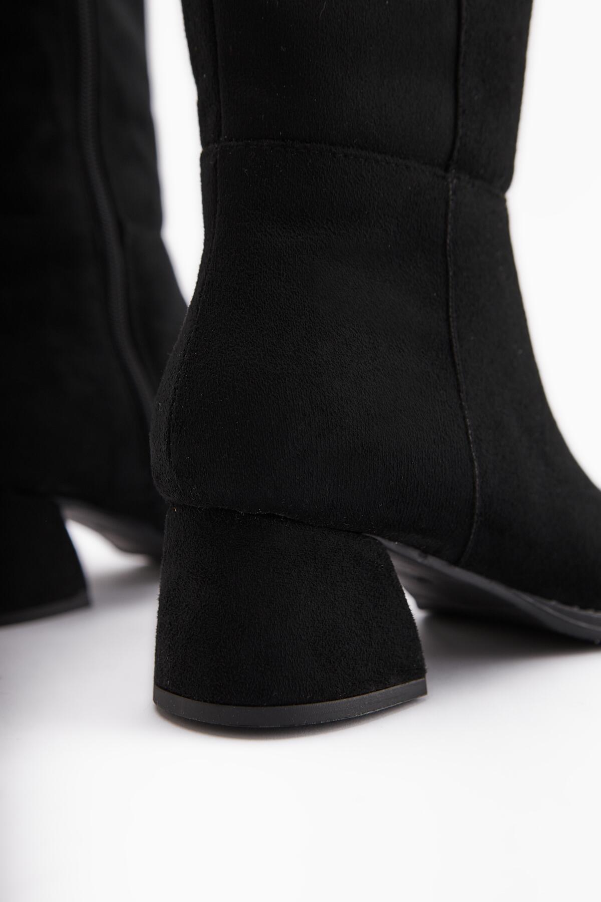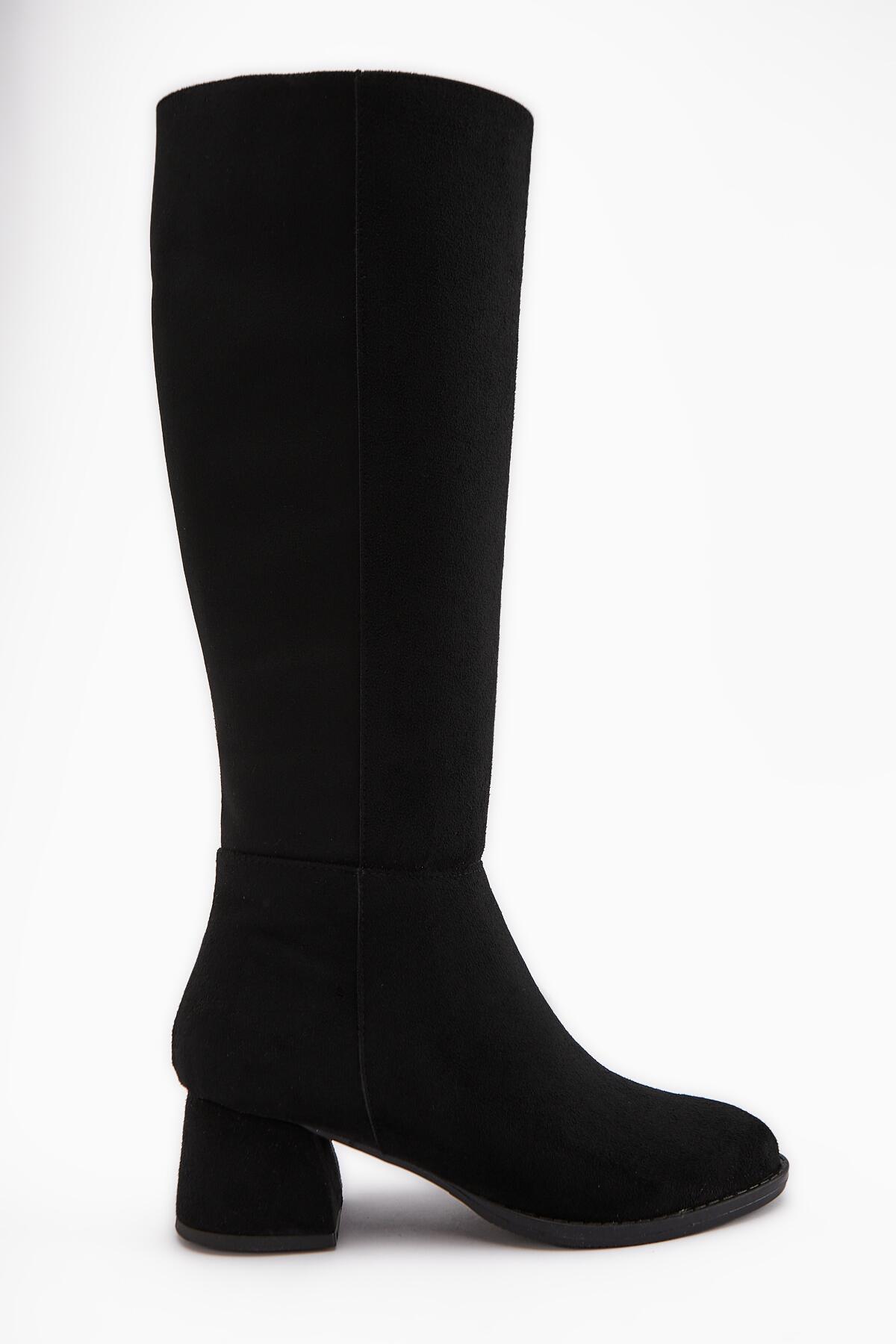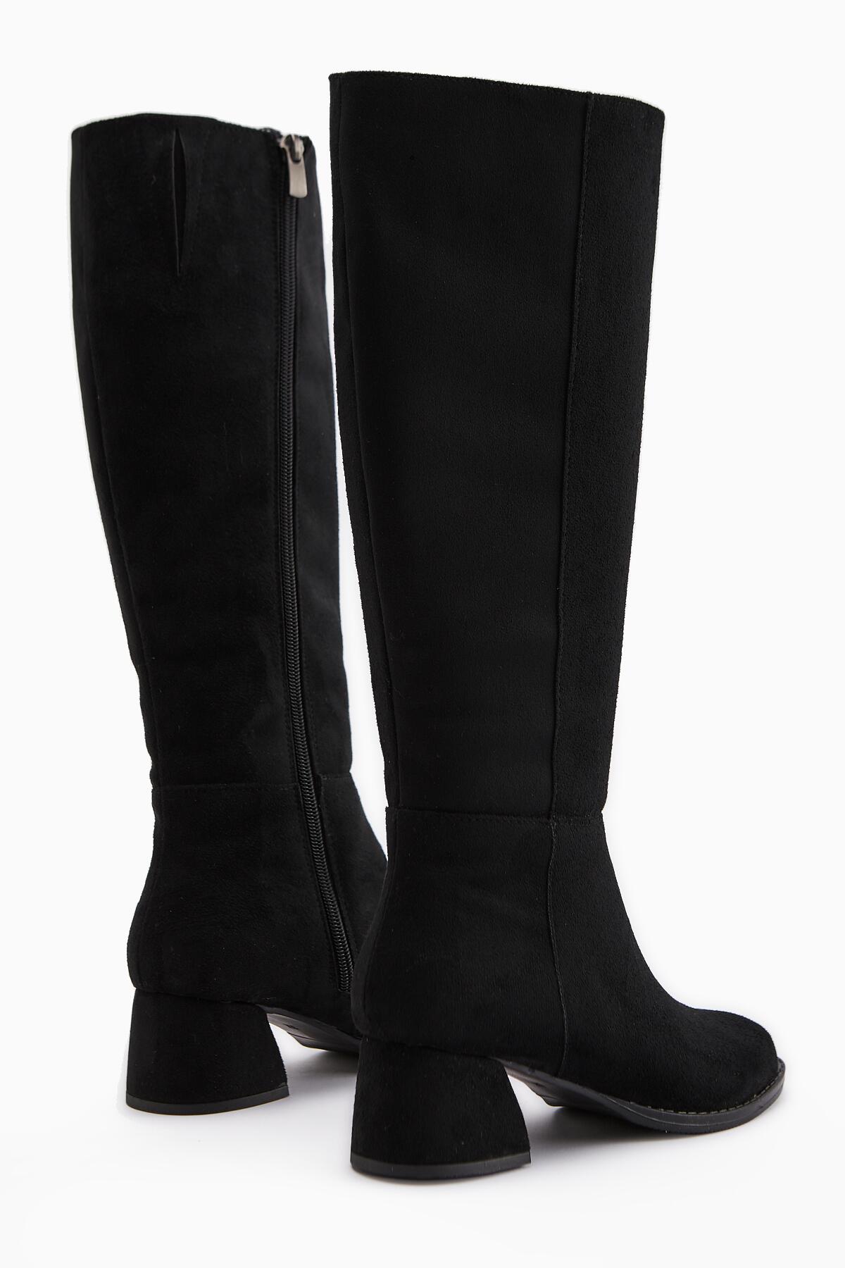 Kadın Fermuarlı Diz Altı Boy 5cm Topuklu Çizme Siyah