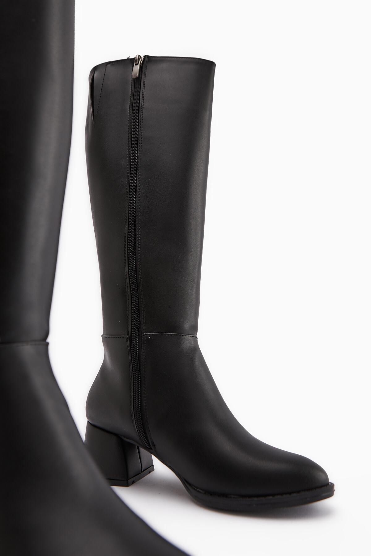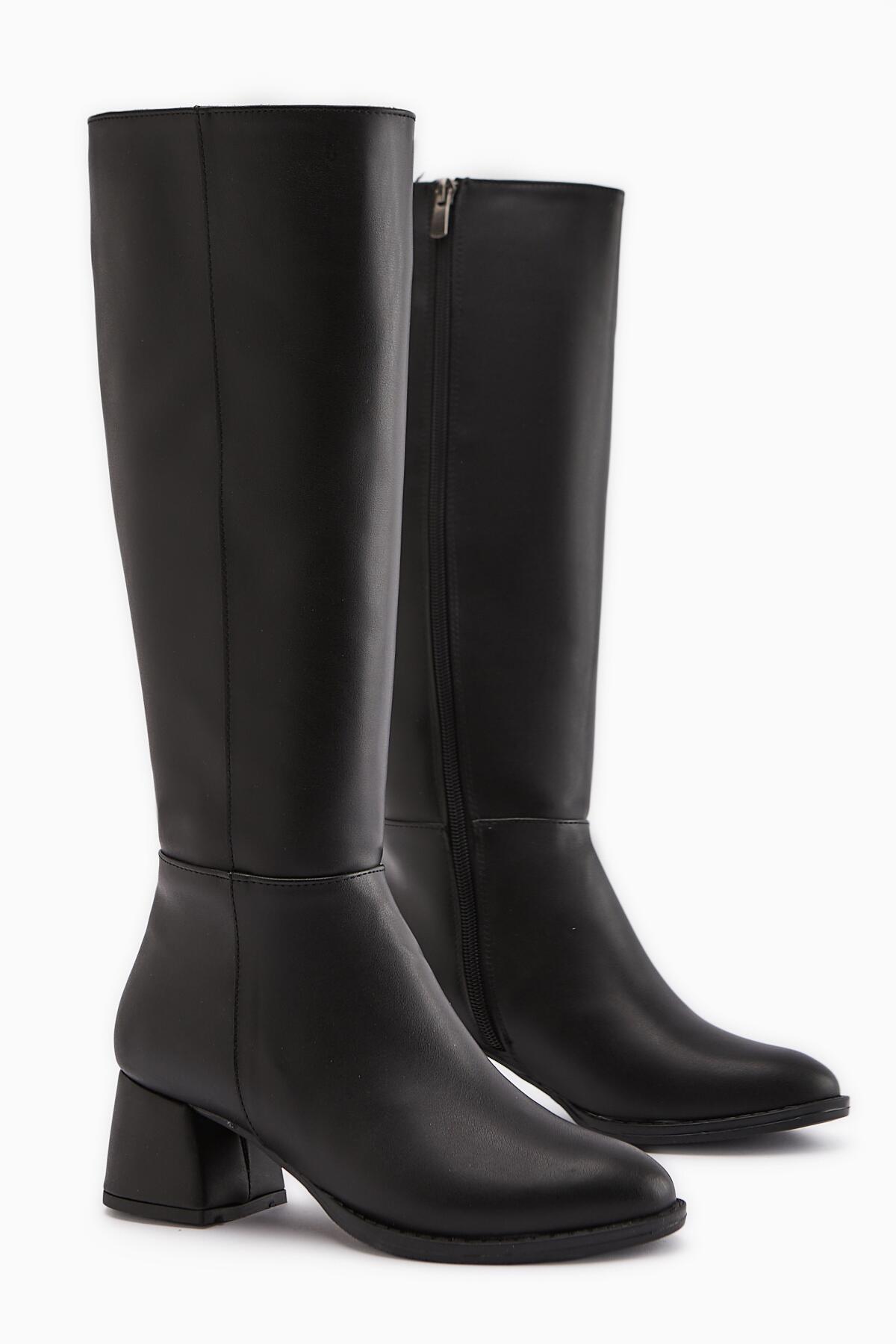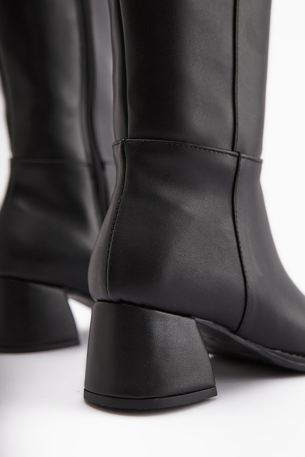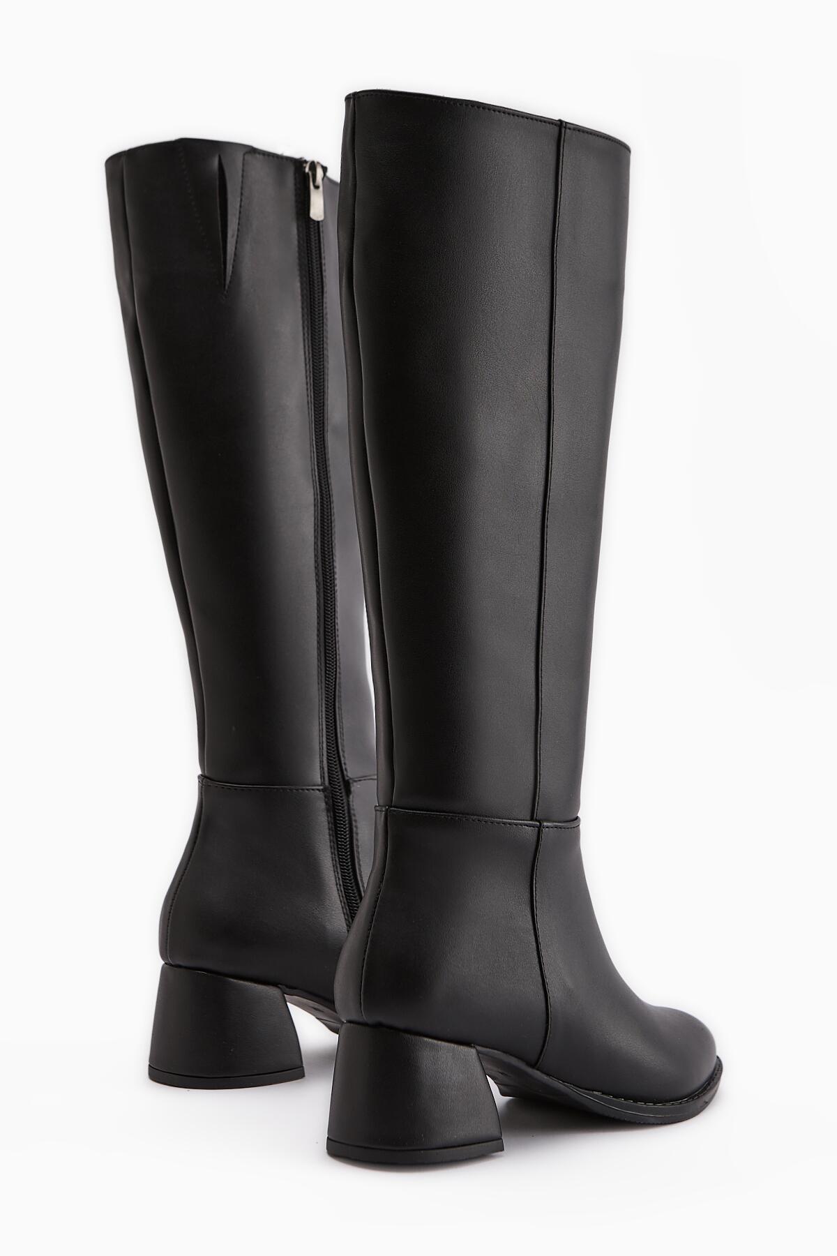 Kadın Fermuarlı Diz Altı Boy 5cm Topuklu Çizme Siyah