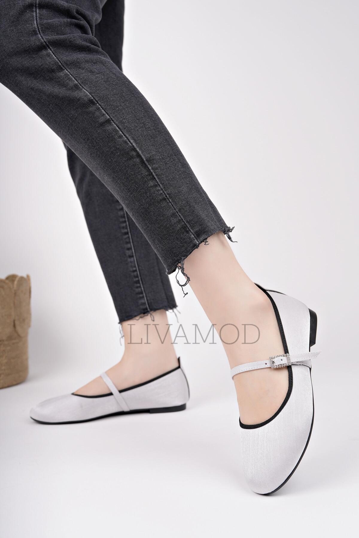 Danya Kadın Günlük Babet Yuvarlak Burun Balerin Babet Ortopedik Memory Flex Hafızalı Taban Açık Gri