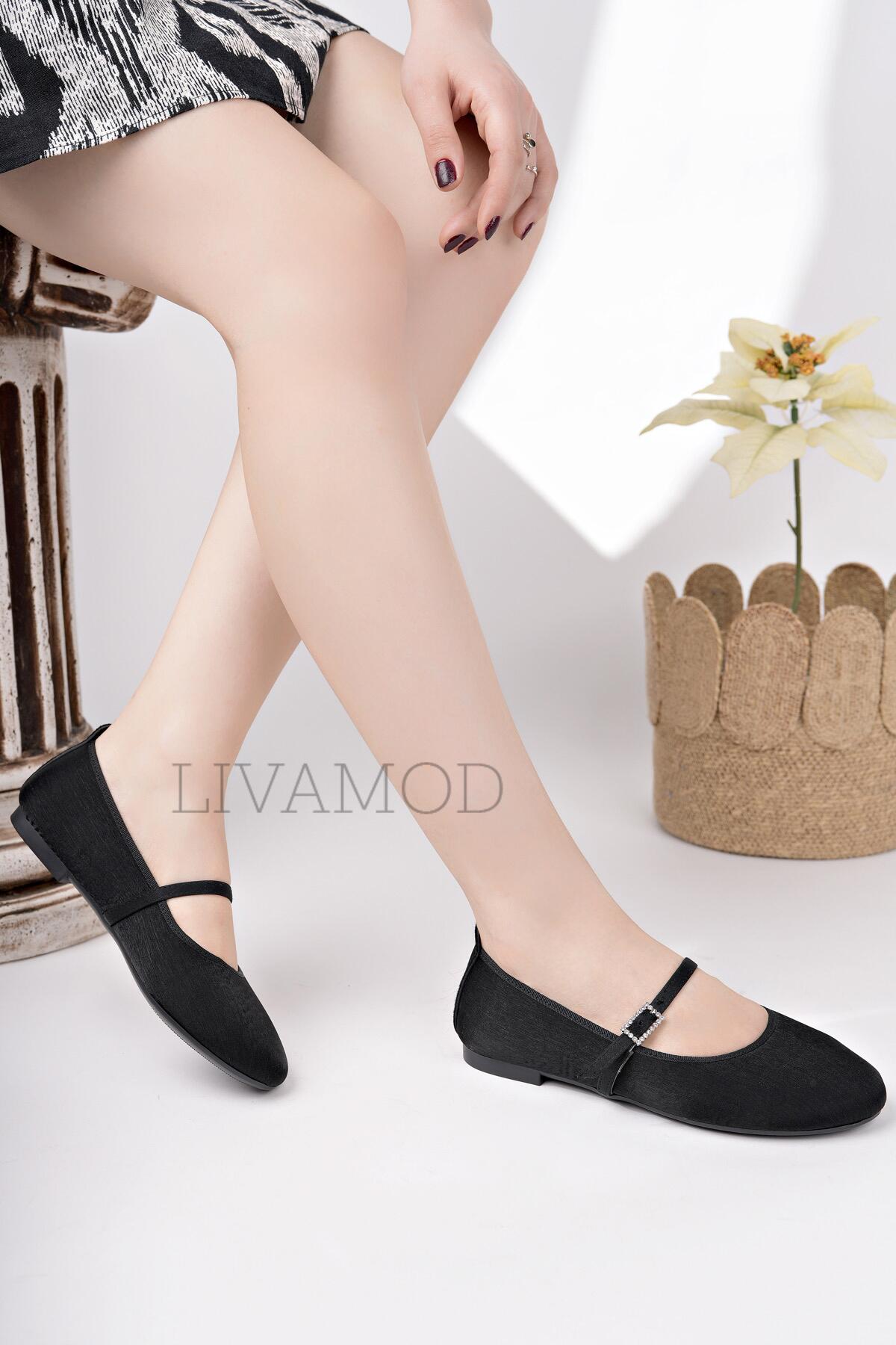 Danya Kadın Günlük Babet Yuvarlak Burun Balerin Babet Ortopedik Memory Flex Hafızalı Taban Siyah
