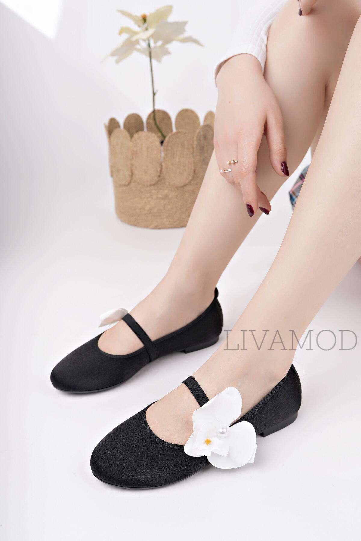 Kadın Günlük Babet Yuvarlak Burun Balerin Babet Ortopedik Memory Flex Hafızalı Taban Siyah