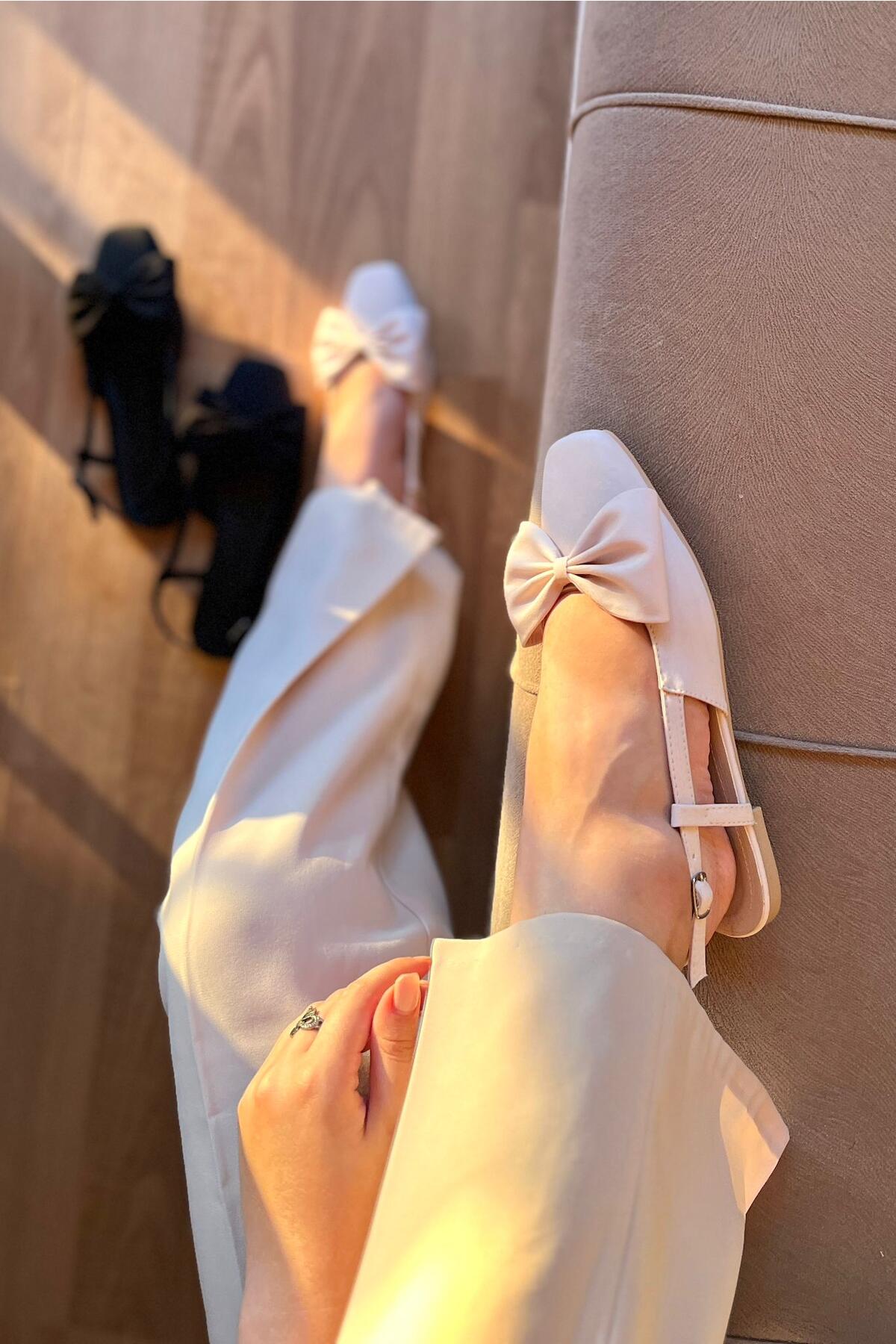 Reverie Kurdele Detaylı Babet Ayakkabı Bej