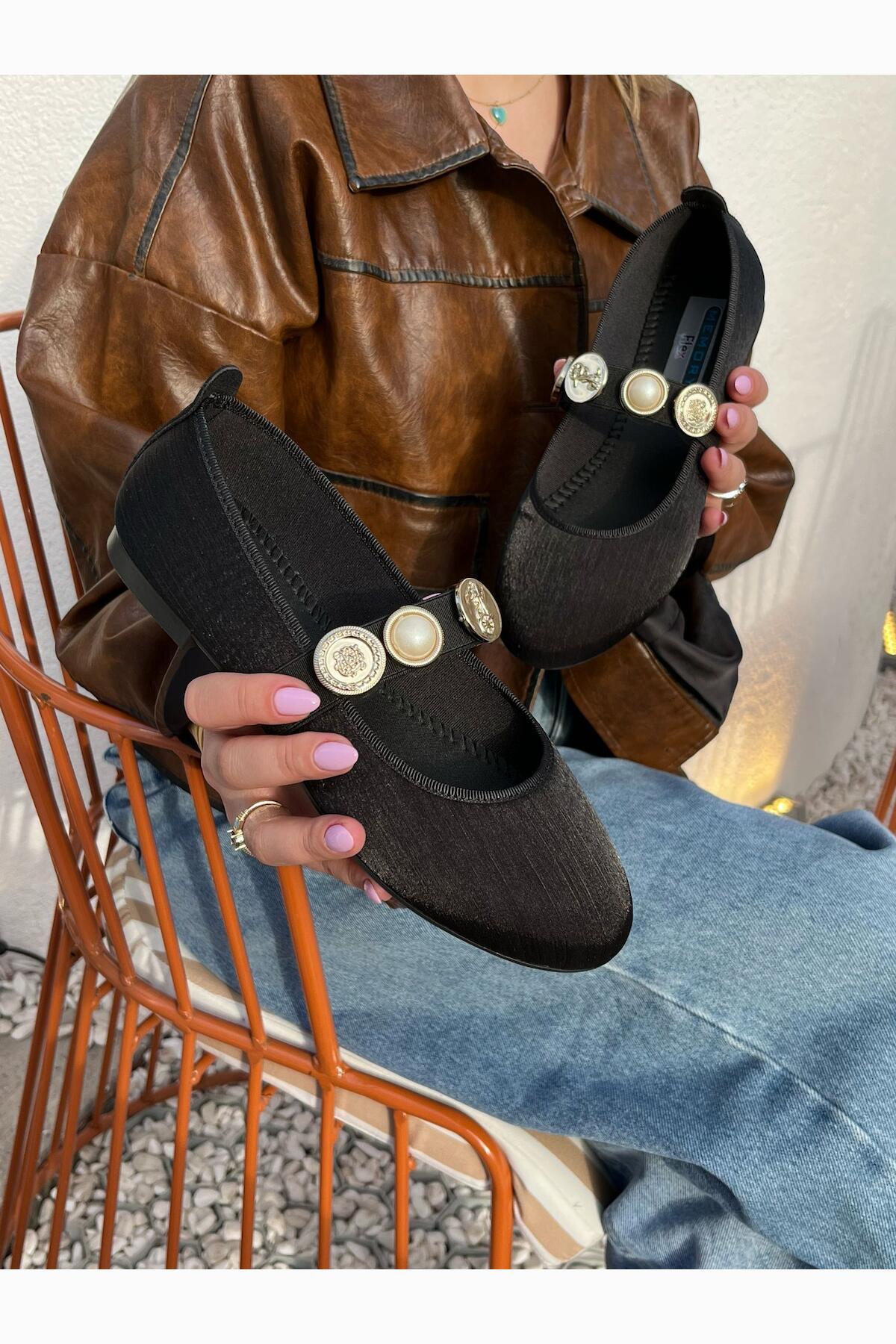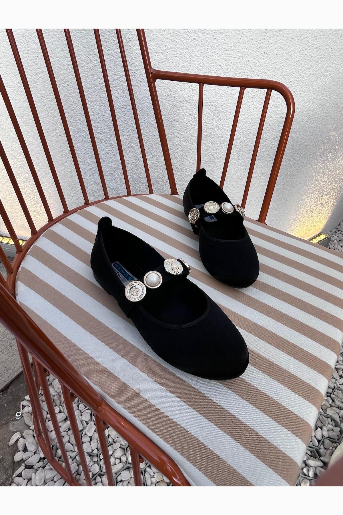 Roma Kadın Günlük Babet Yuvarlak Burun Balerin Ortopedik Memory Flex Hafızalı Taban Siyah