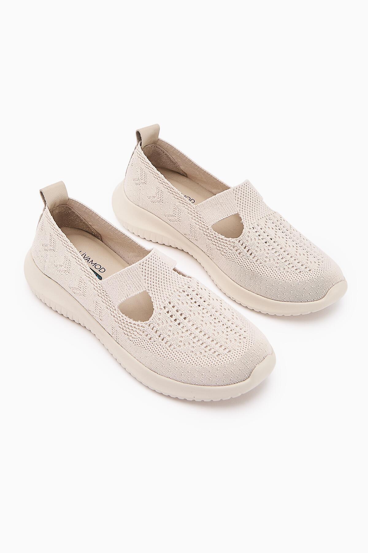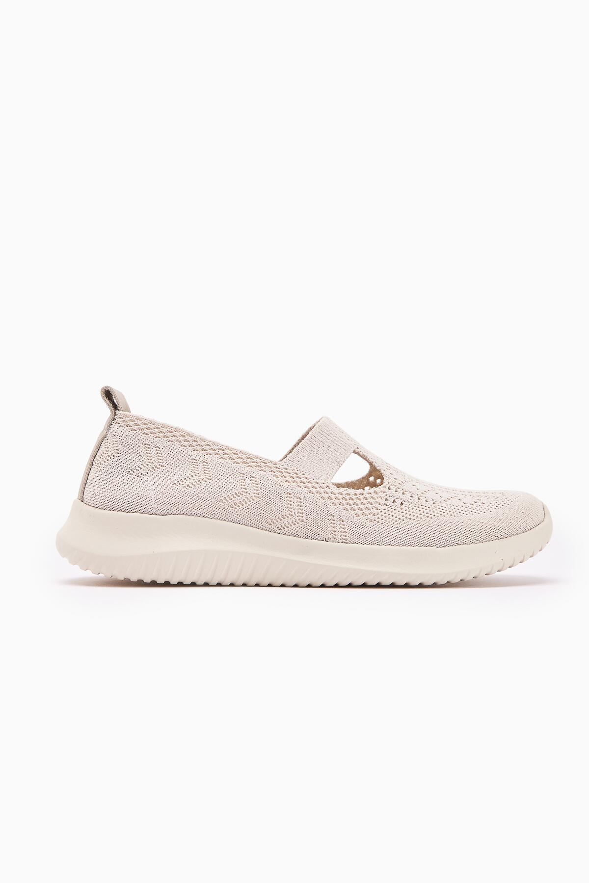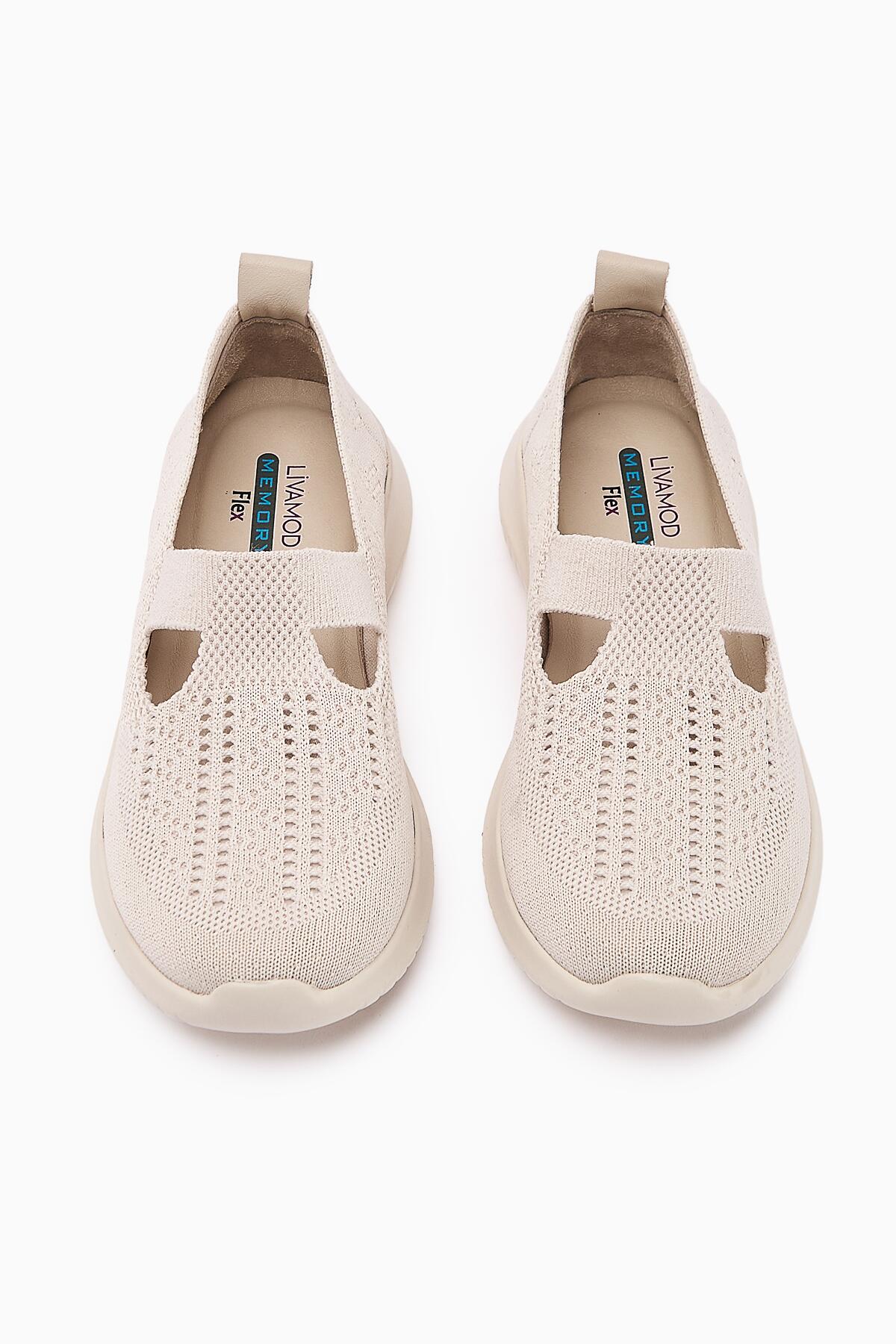 Flexor Kadın Hakiki Deri Ortopedik Taban Triko Günlük Spor Ayakkabı Bej