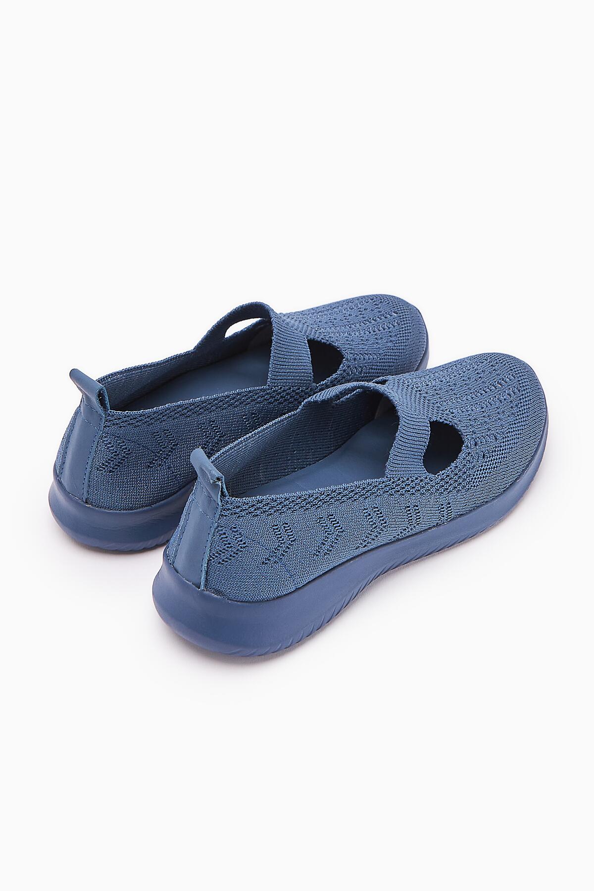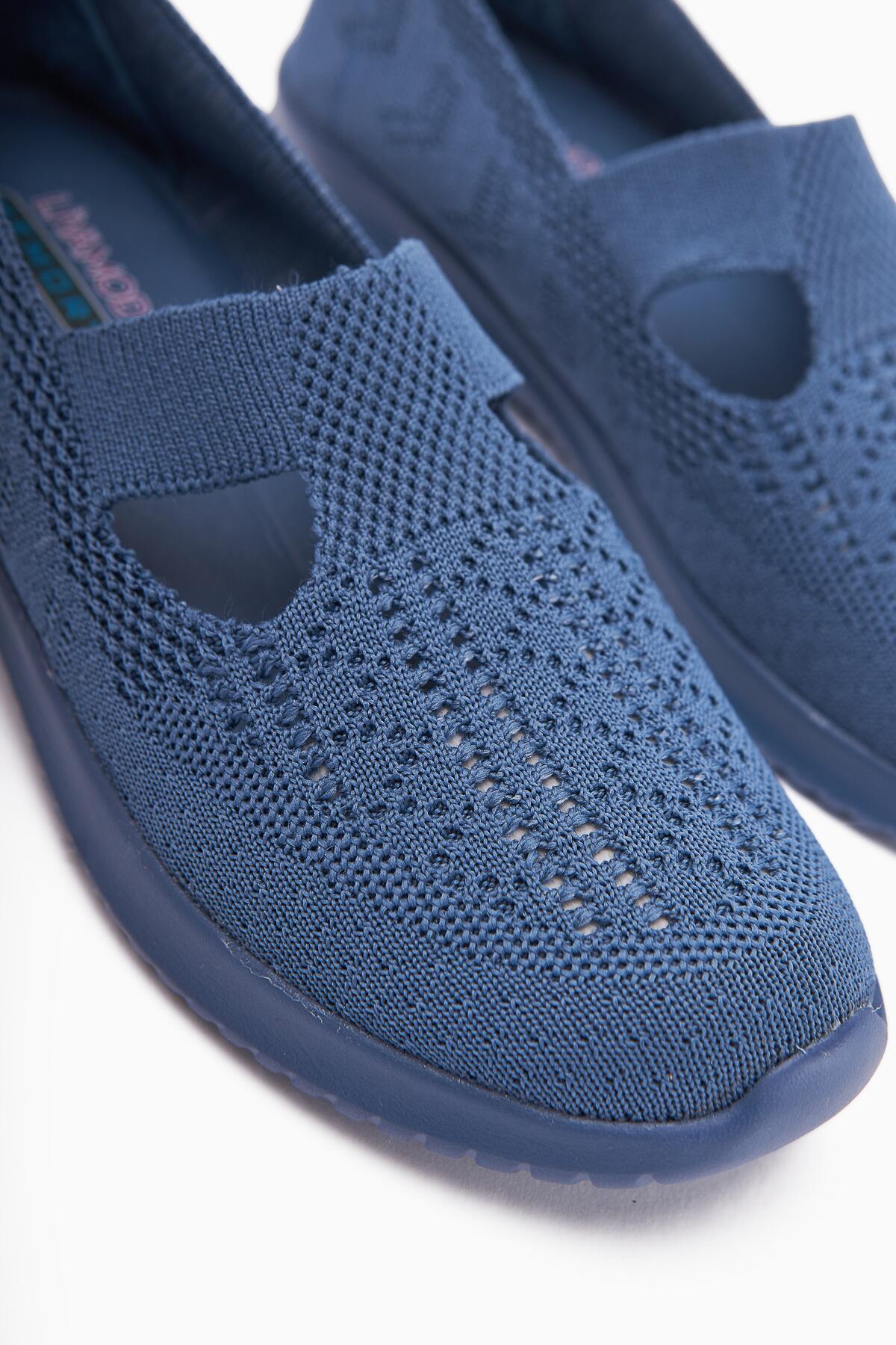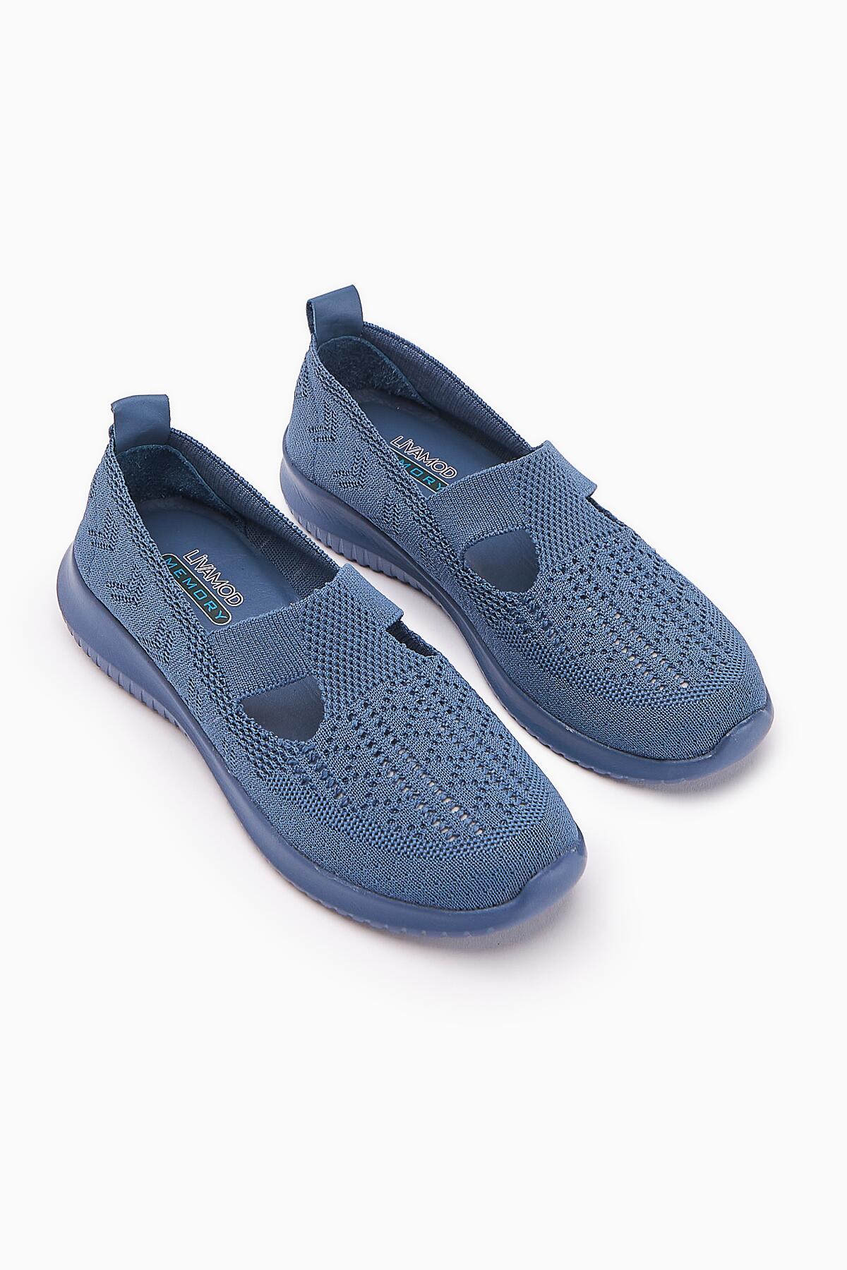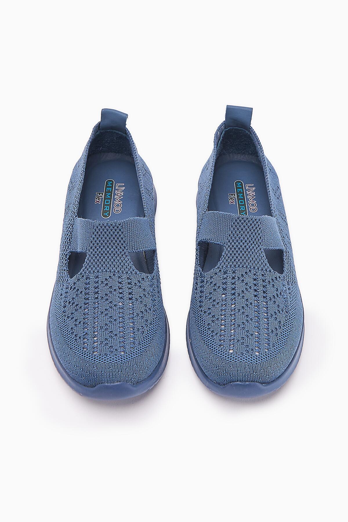 Flexor Kadın Hakiki Deri Ortopedik Taban Triko Günlük Spor Ayakkabı Lacivert