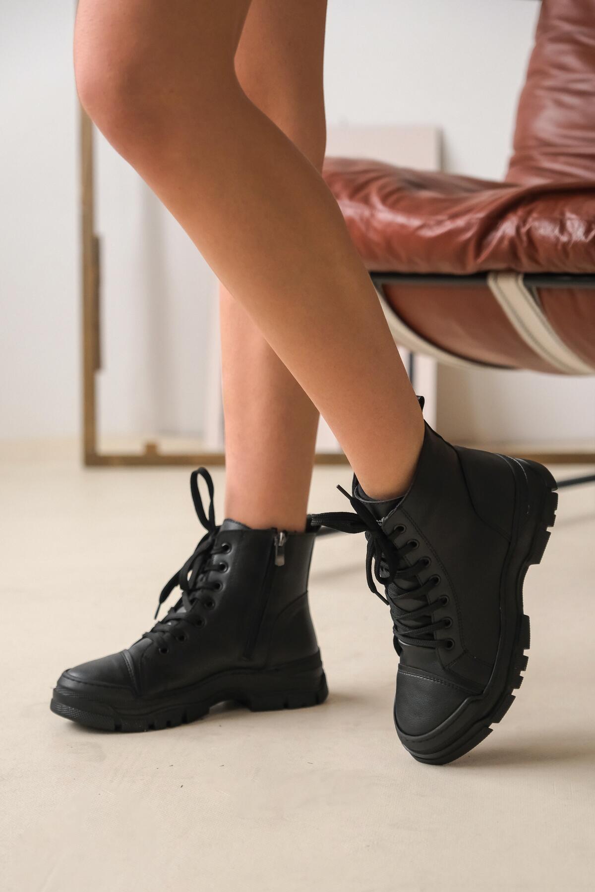 Guuja Kadın Postal Bot Bağcıklı Fermuarlı Kesa Siyah